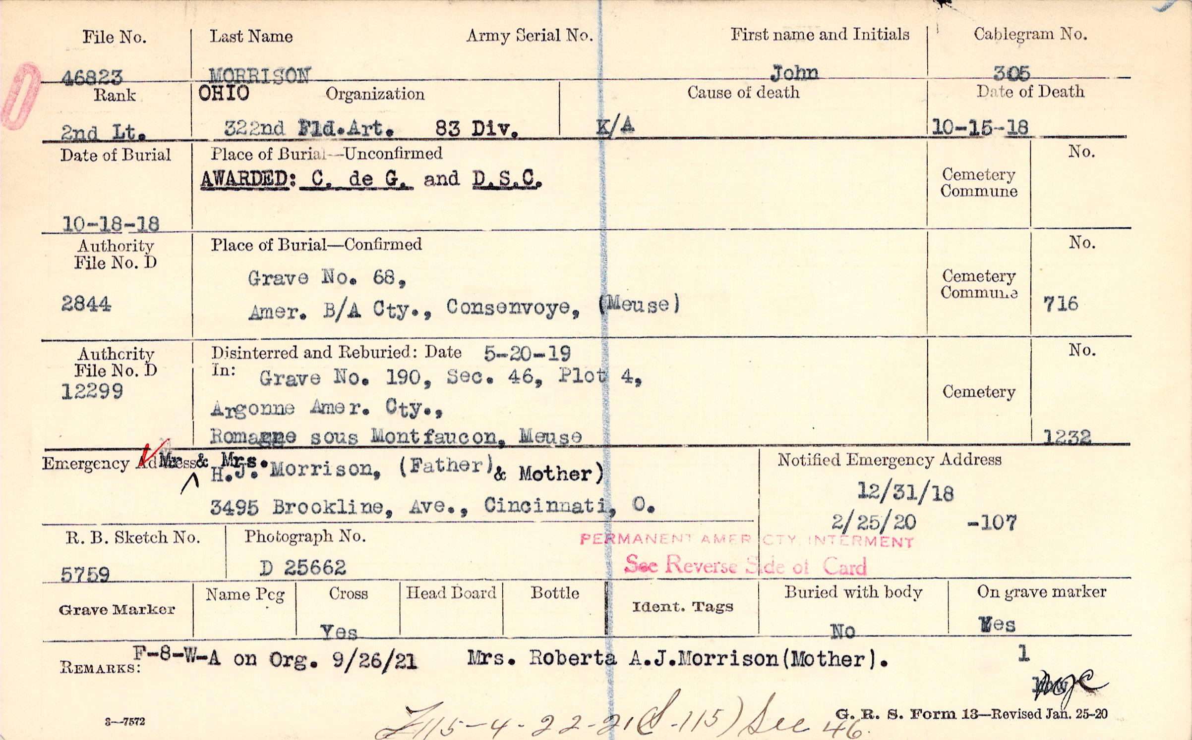 Mrs. Roberta A.J. Morrison (Mother)., F-8-W-A on Org. 9/26/21, F115-4-22-21 (S.115) Sec 46