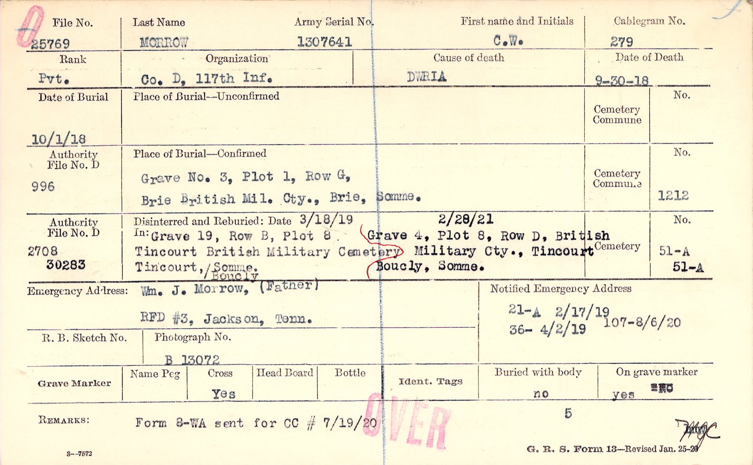 Wm. J. Morrow, (Father), RFD #3, Jackson, Tenn.