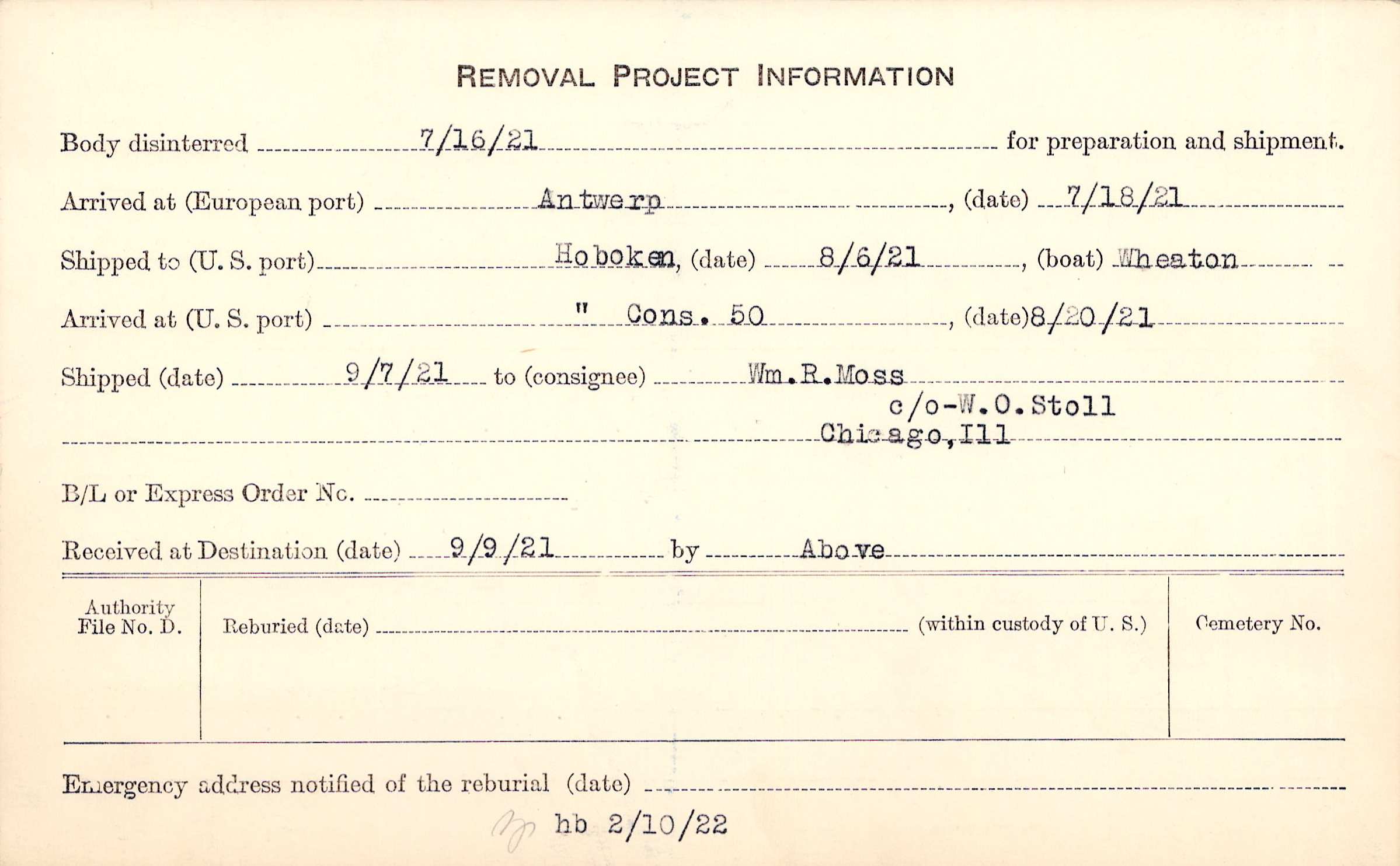 to Wm. R. Moss, c/o-W.O.Stoll, Chicago, Ill.