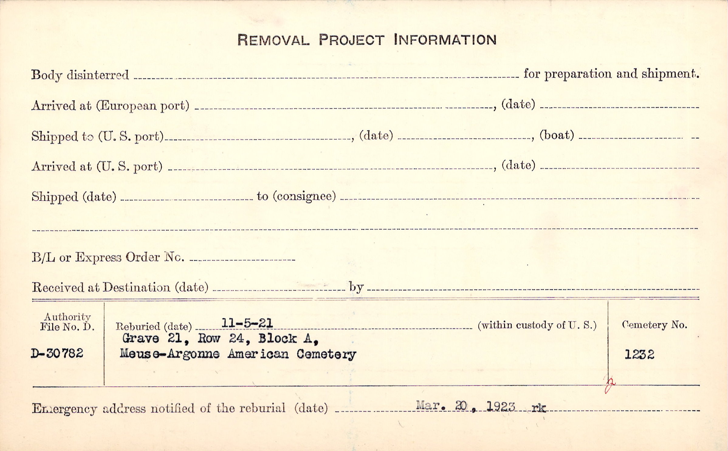 Grave 153, Section 58, Plot 3, Argonne American Cemetery, Romagne-sous-Montfaucon, Meuse
