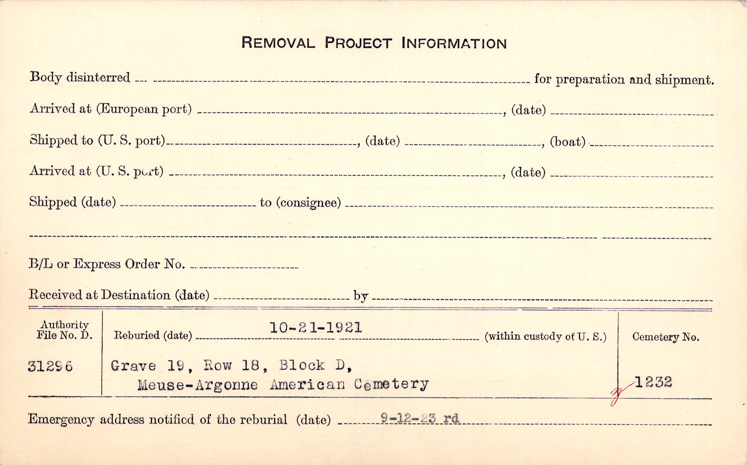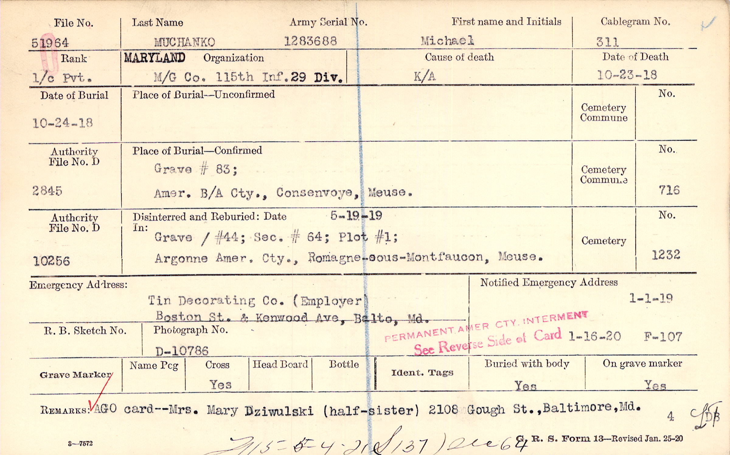 Grave # 83, Amer. B/A Cty., Consenvoye, Meuse.