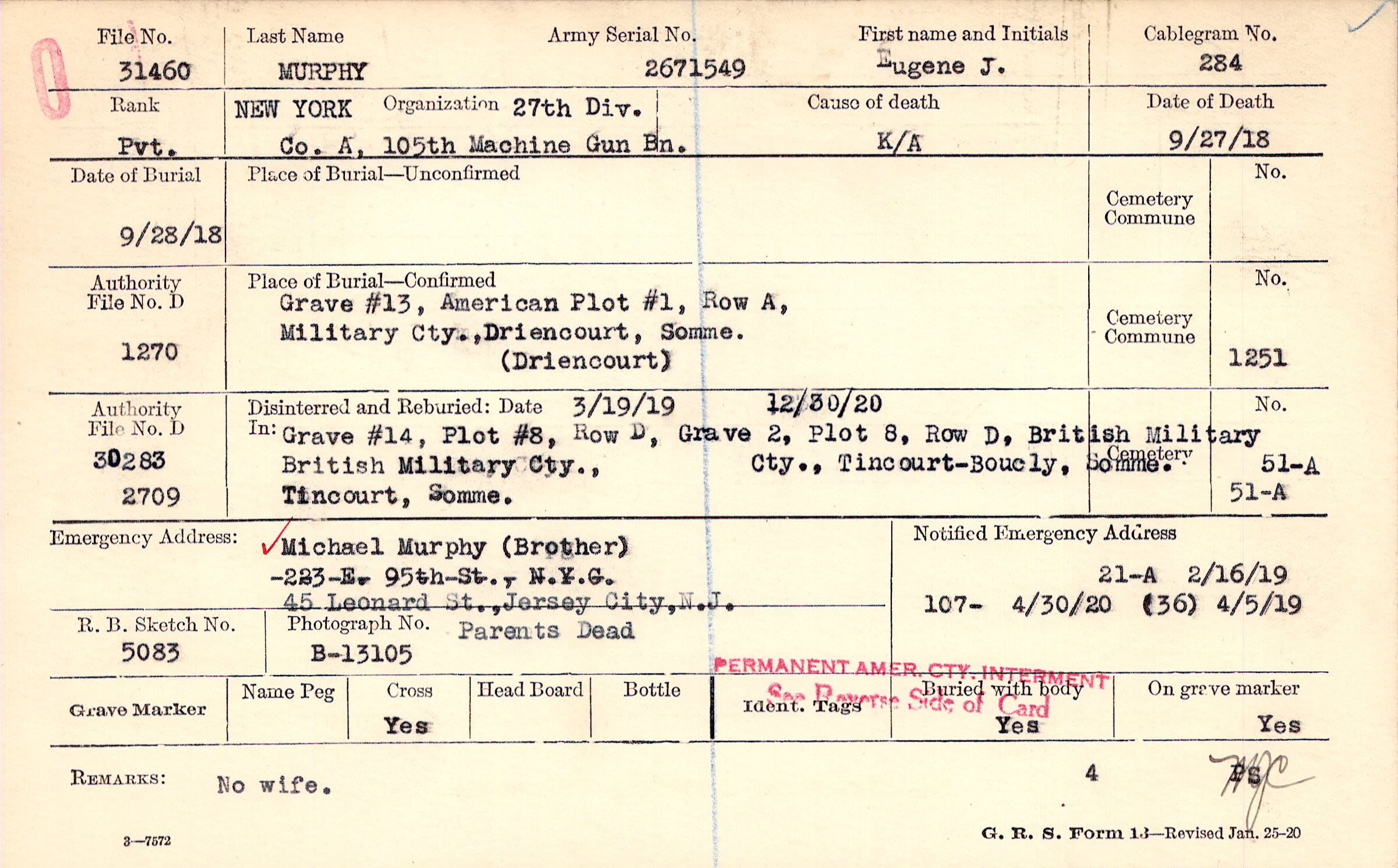 Michael Murphy (Brother), 45 Leonard St., Jersey City, N.J., Parents Dead