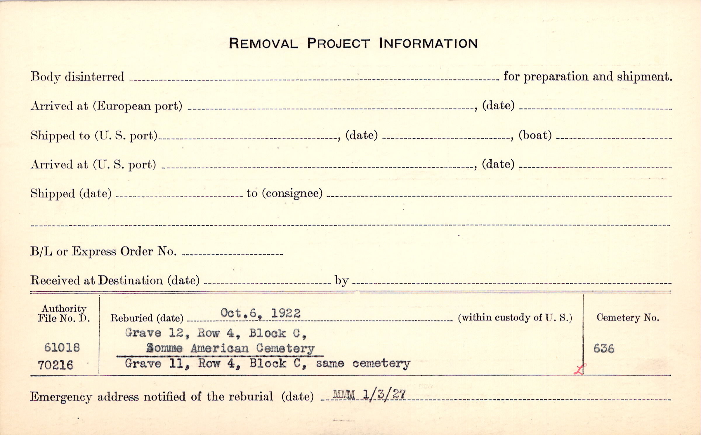 Prior Burial in Foreign Cemetery |