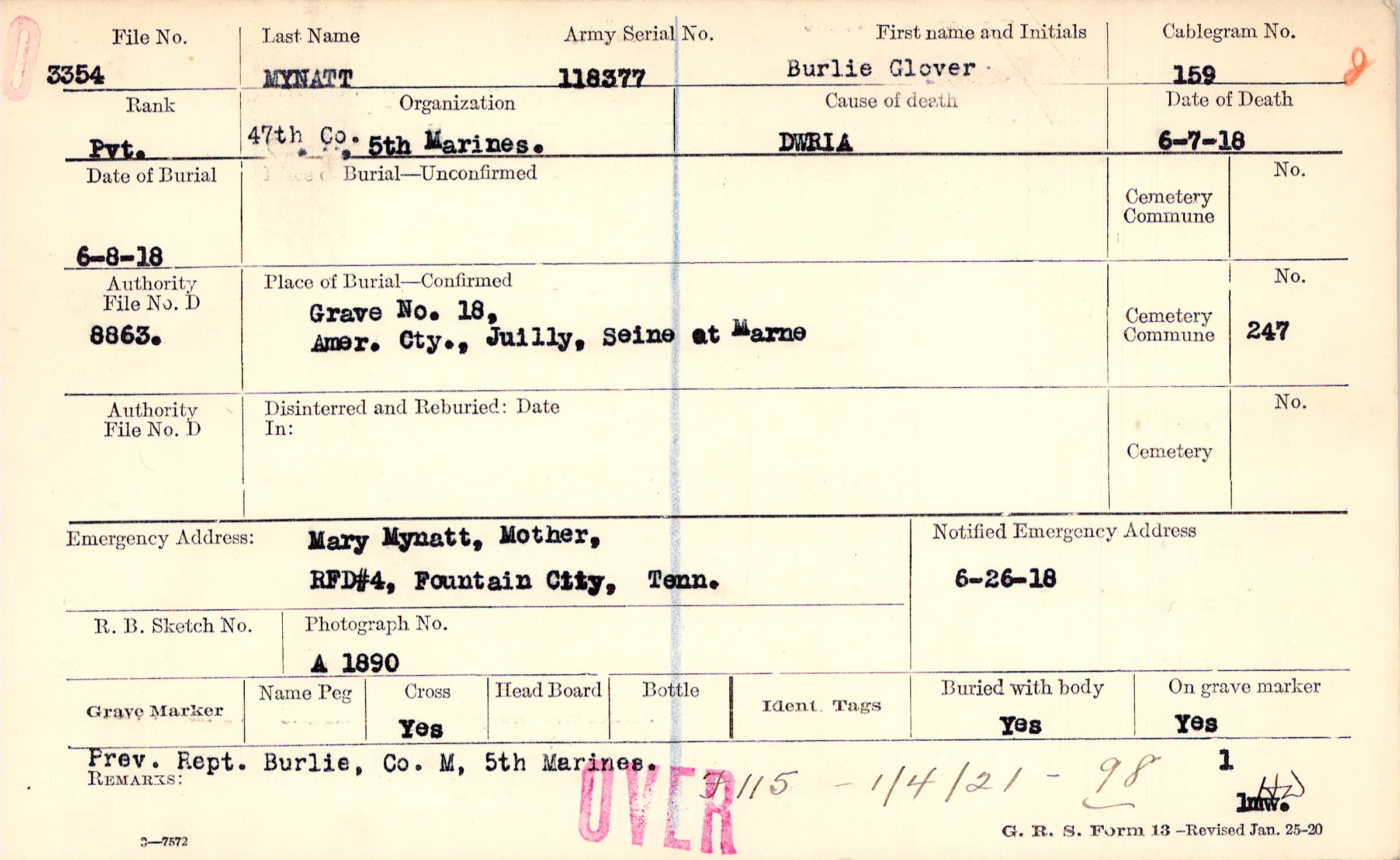 Grave 18, Amer. Cty., Juilly, Seine et Marne