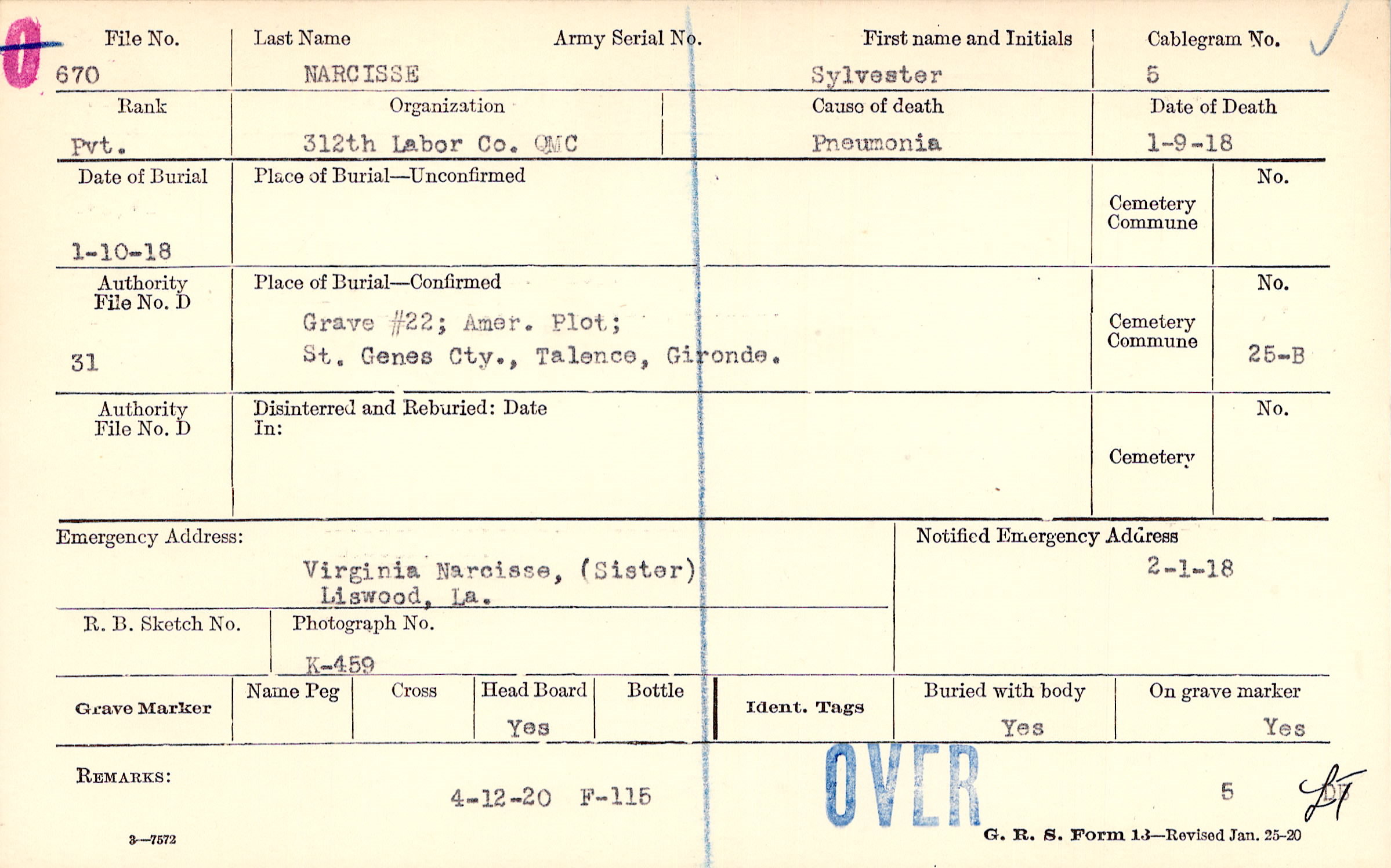 Grave #22, Amer. Plot, St. Genes Cty., Talence, Gironde.