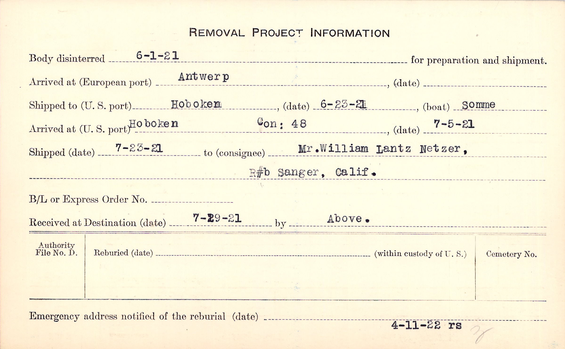 to Mr. William Lantz Netzer, R#b Sanger, Calif.