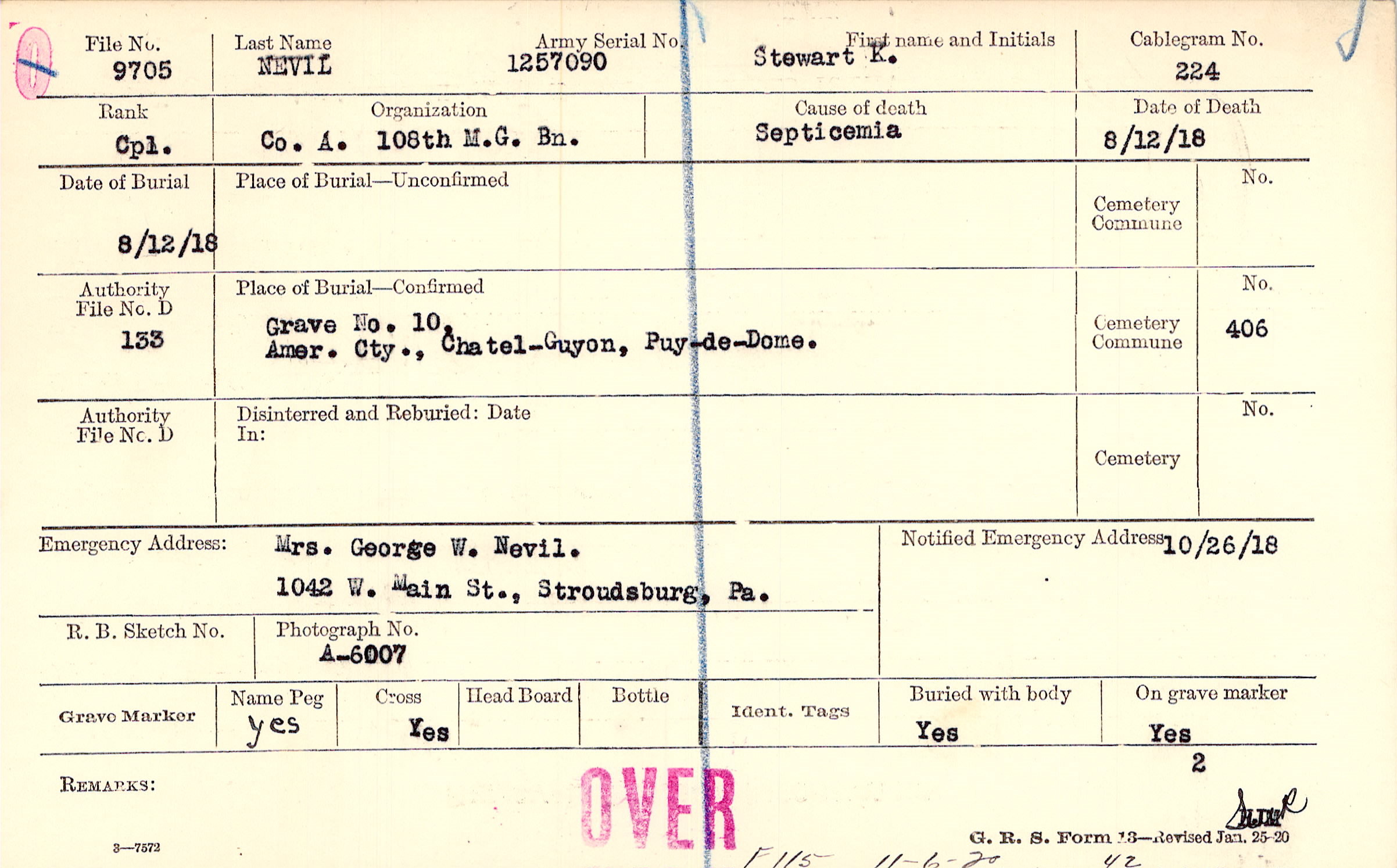 Grave 10, Amer. Cty., Chatel-Guyon, Puy-de-Dome.