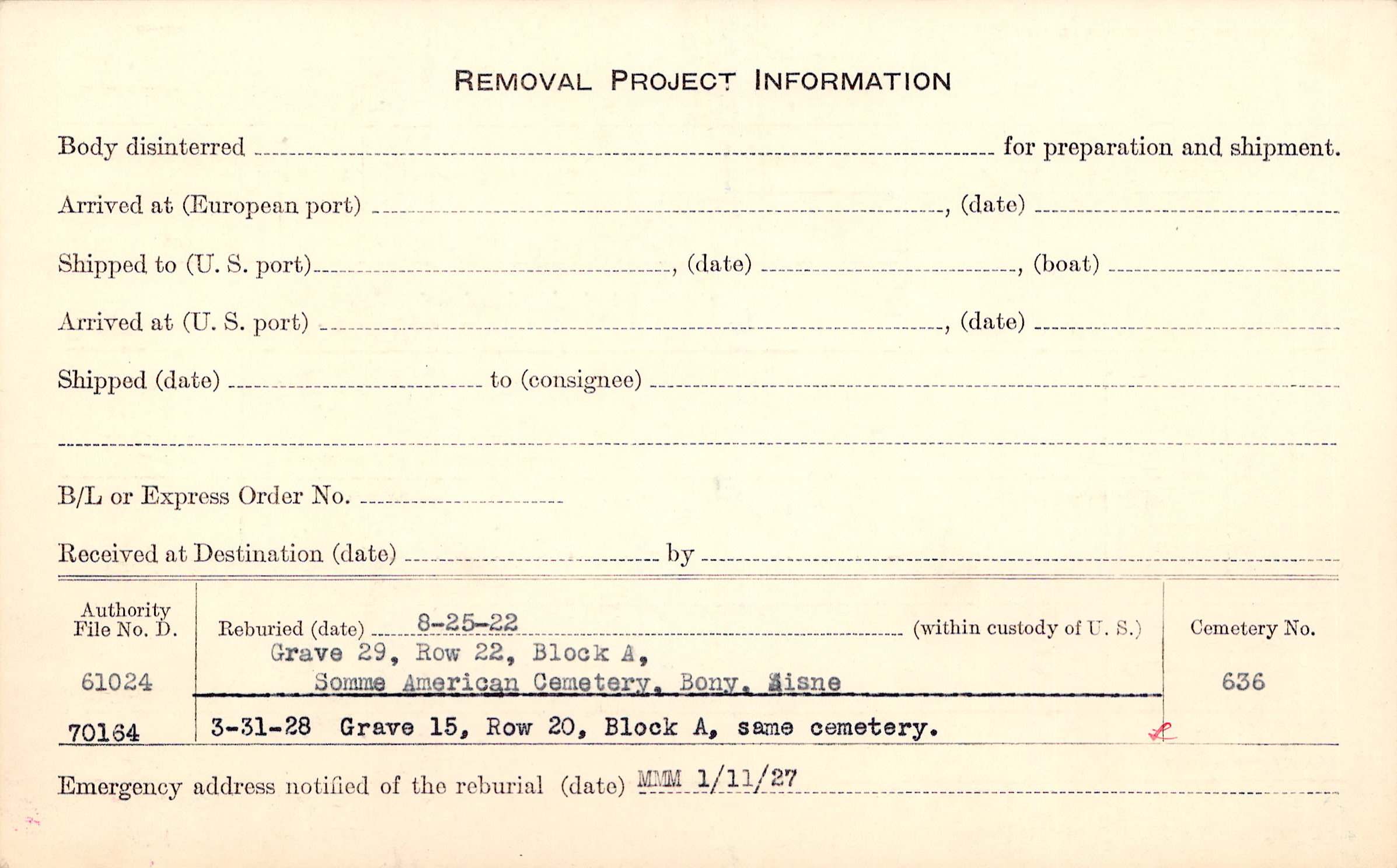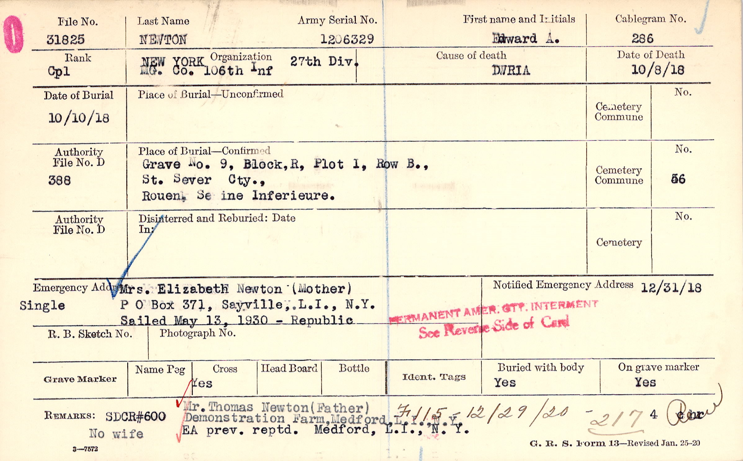 Grave 9, Block R, Plot 1, Row B, St. Sever Cty., Rouen, Seine Inferieure.