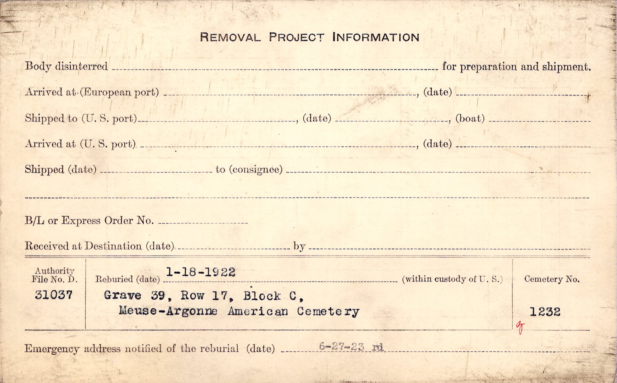 Grave 22, Plot A, Row 2, Amer. B/A Cty., Very, Meuse