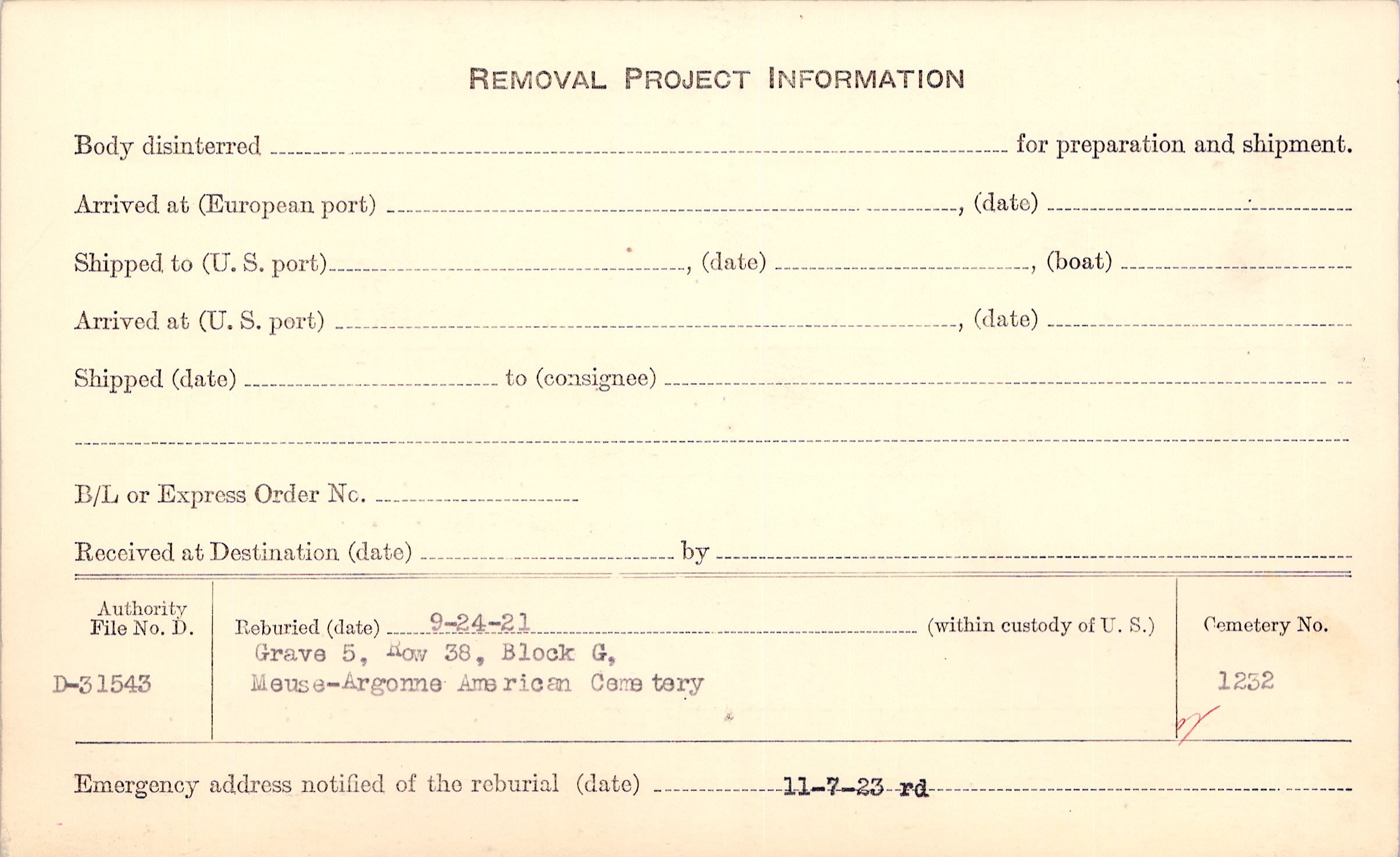 | Reburied (date): |