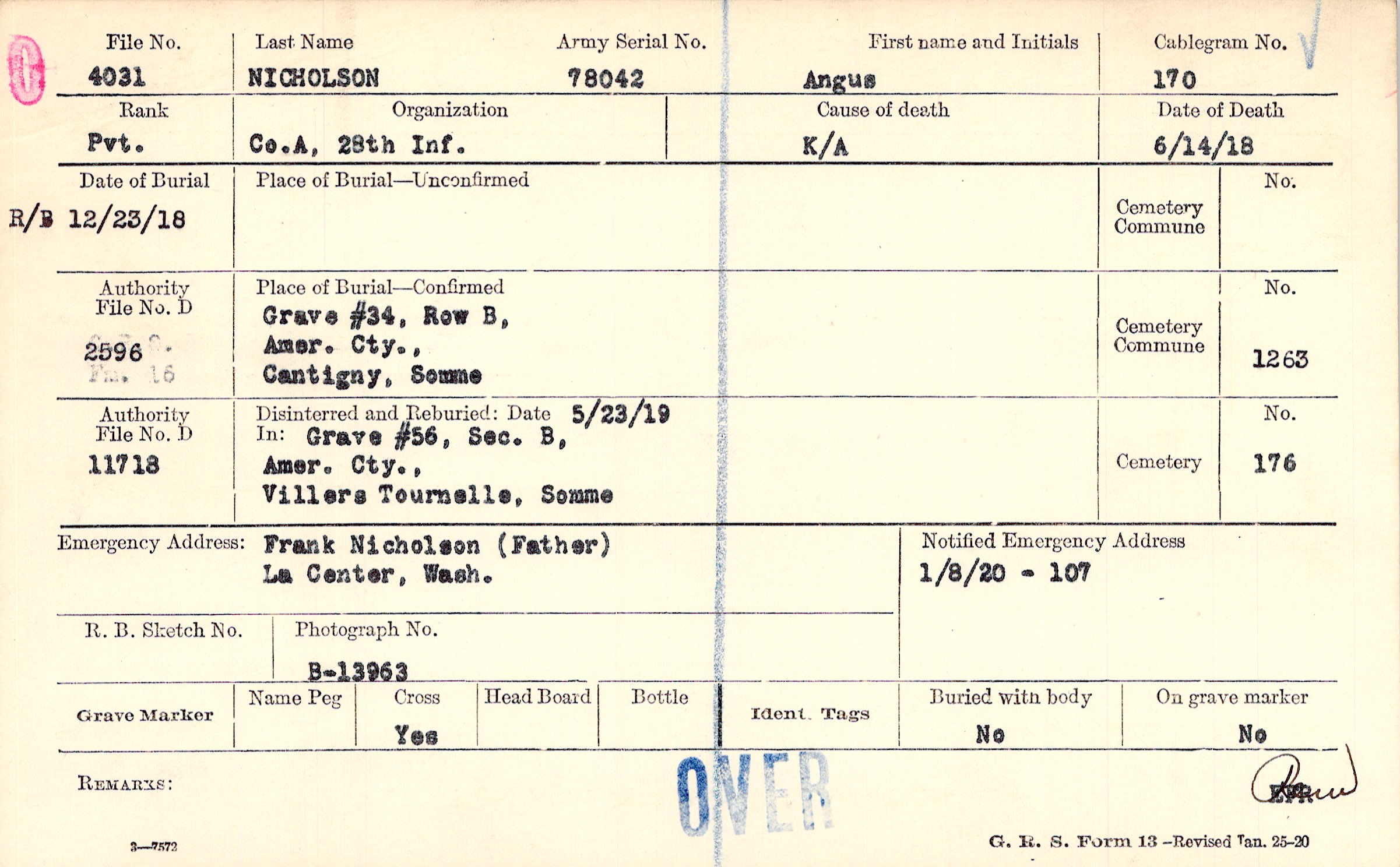 Grave #34, Row B, Amer. Cty., Cantigny, Somme