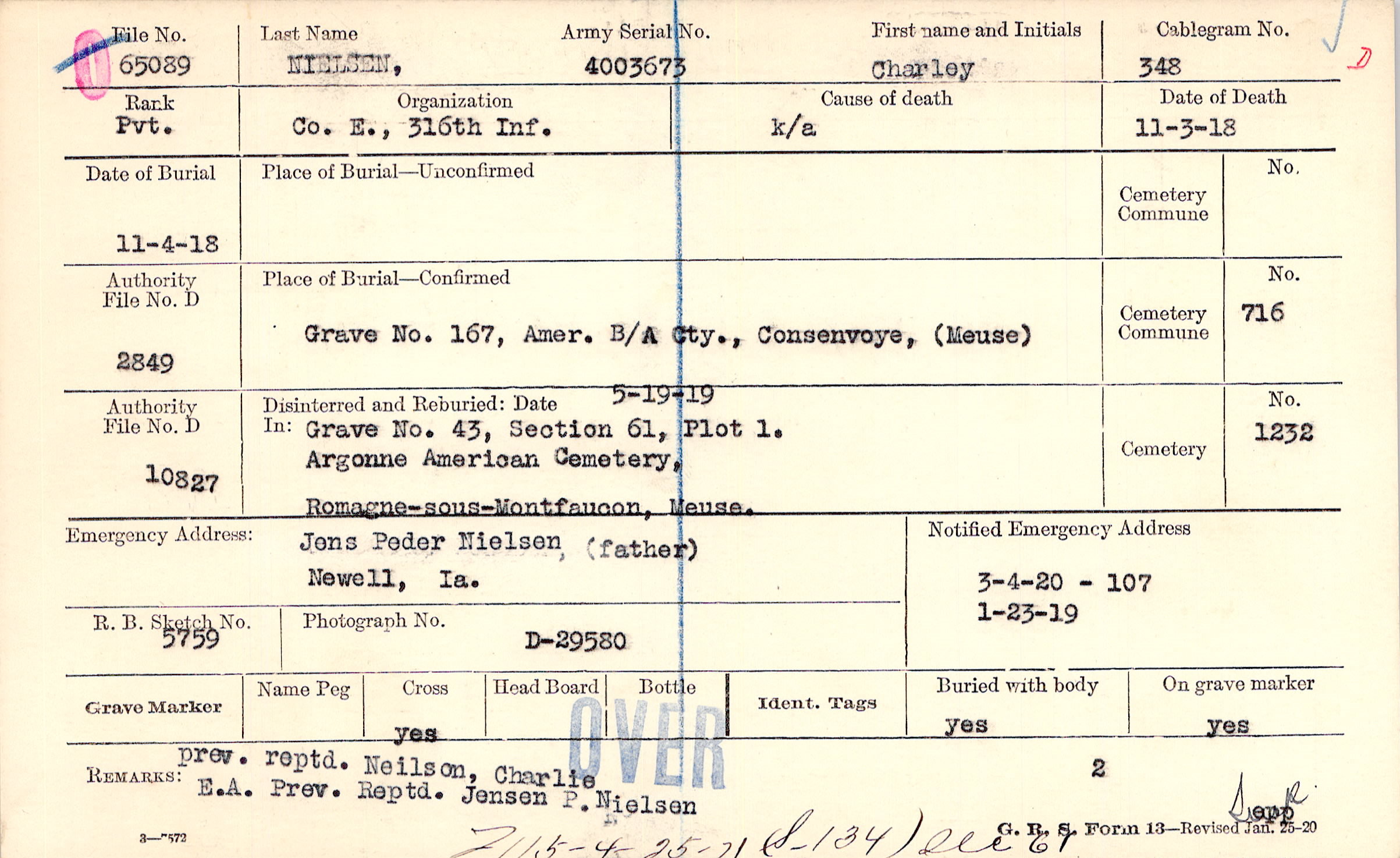 Grave 167, Amer. B/A Cty., Consenvoye, Meuse