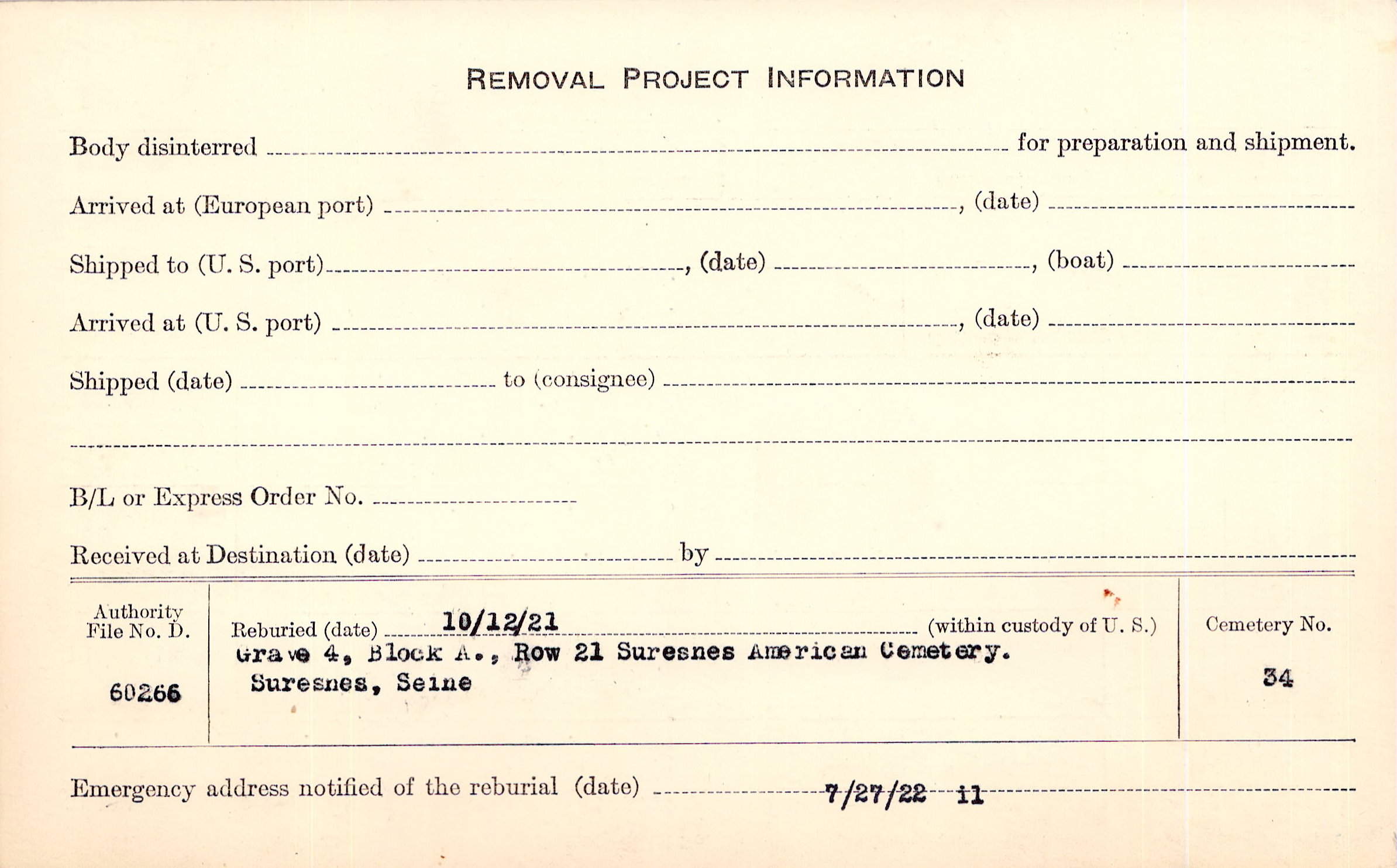 Grave 6, Mil. Sec., Amer. Plot, Row 21, San Vito Cty., Udine, Udine, Italy