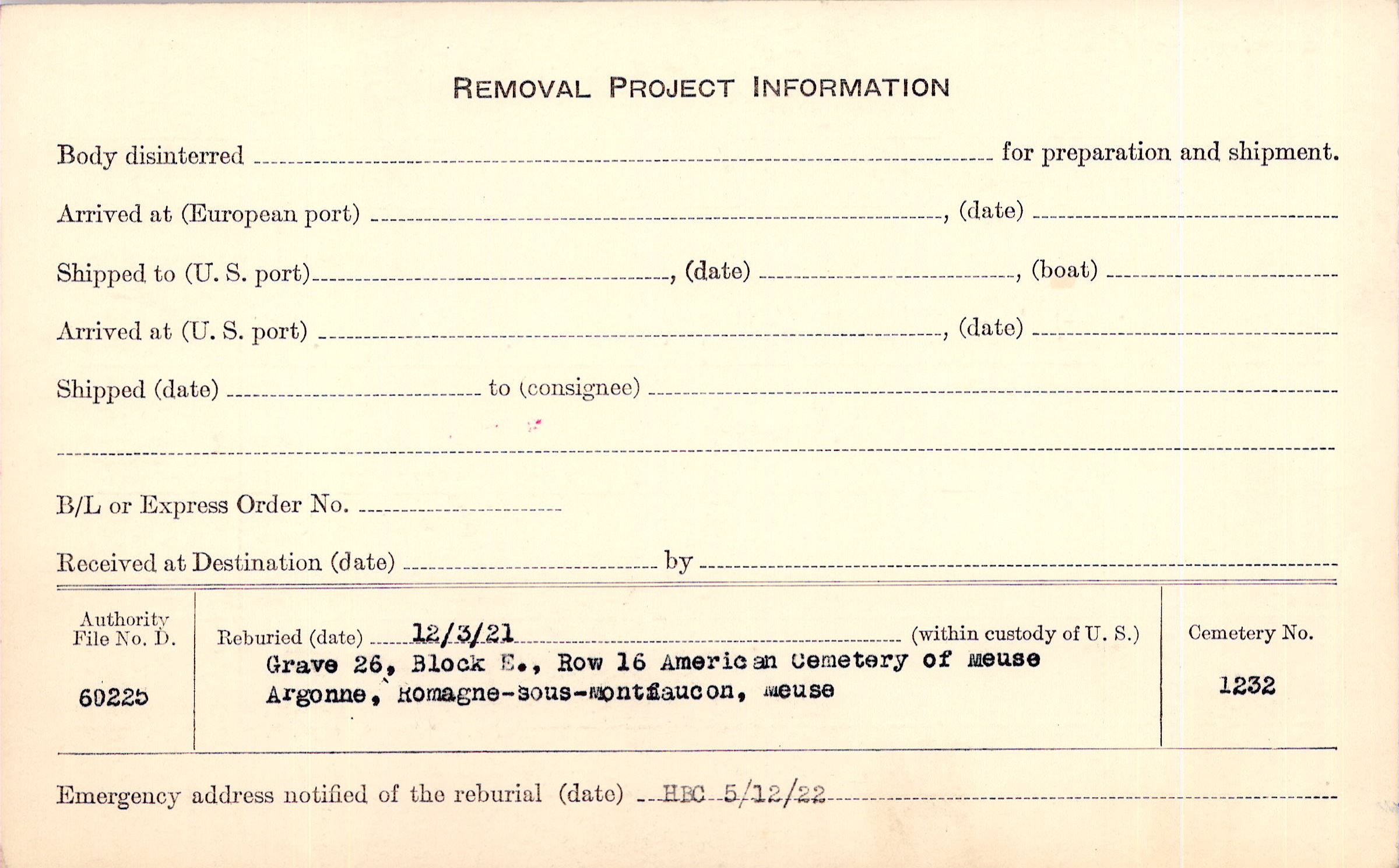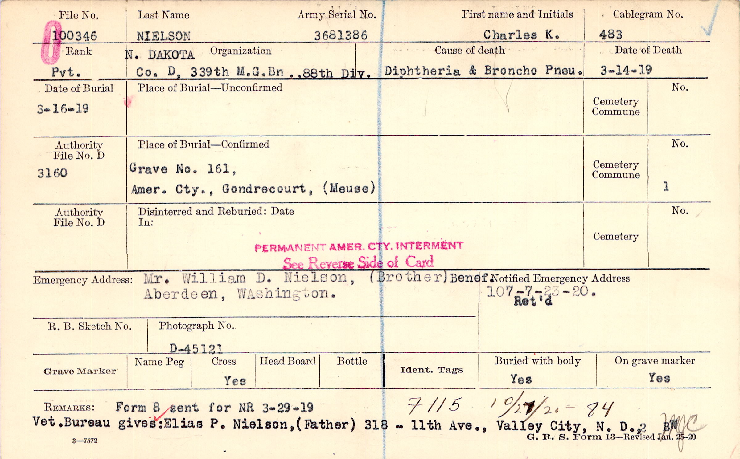 Grave 161, Amer. Cty., Gondrecourt, Meuse