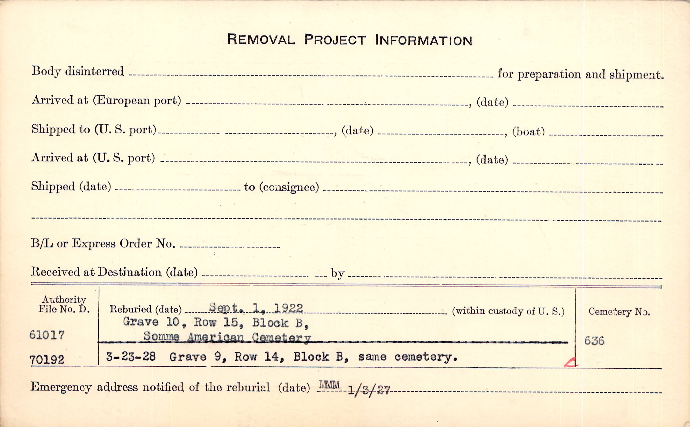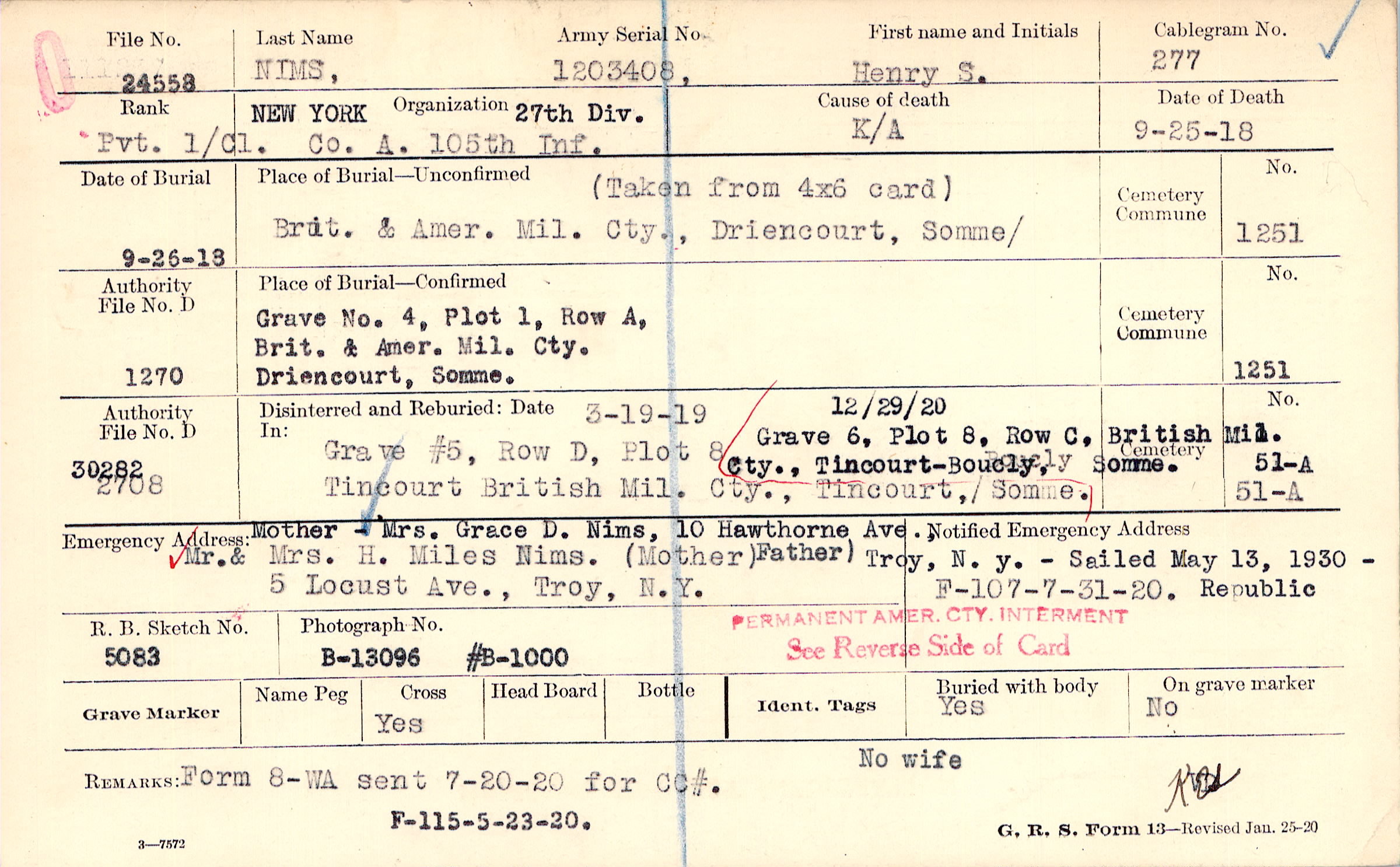 Prior Burial in Foreign Cemetery |