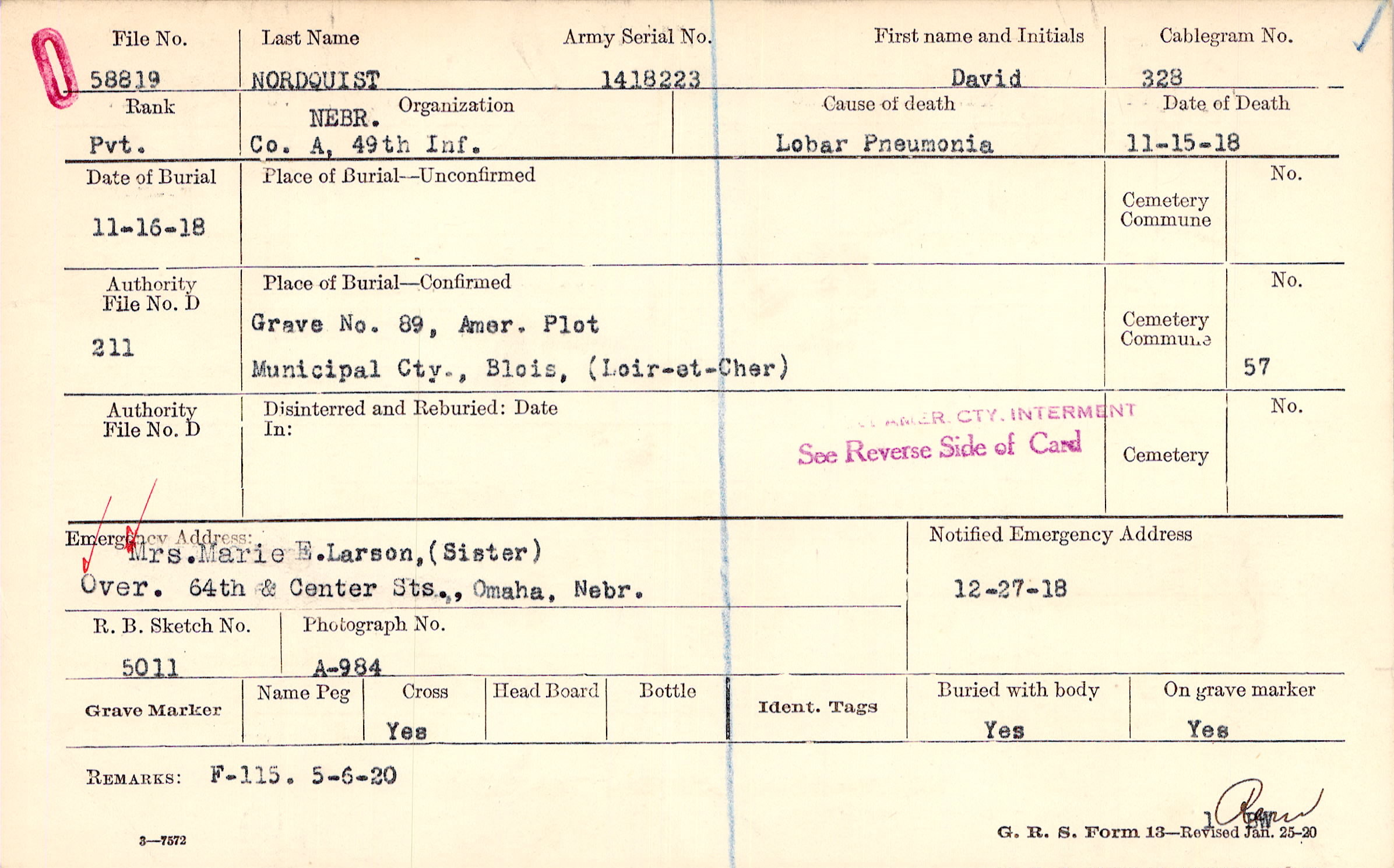 Grave 89, Amer. Plot, Municipal Cty., Blois, (Loir-et-Cher)