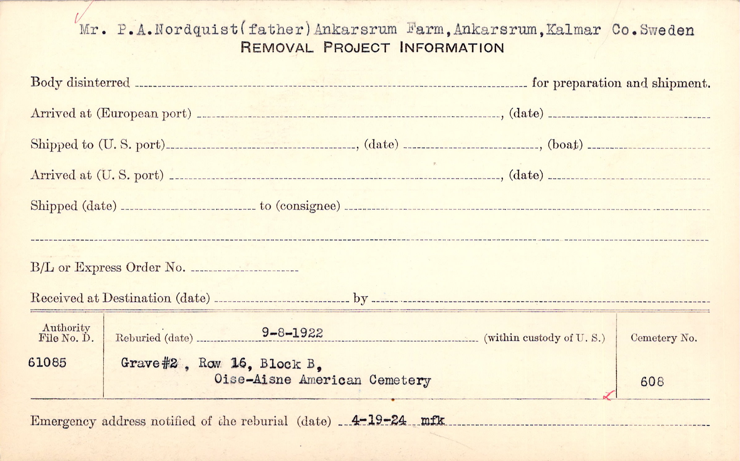 Mr. P.. A. Nordquist, (father), Ankarsrum Farm, Ankarsrum, Kalmar Co., Sweden |