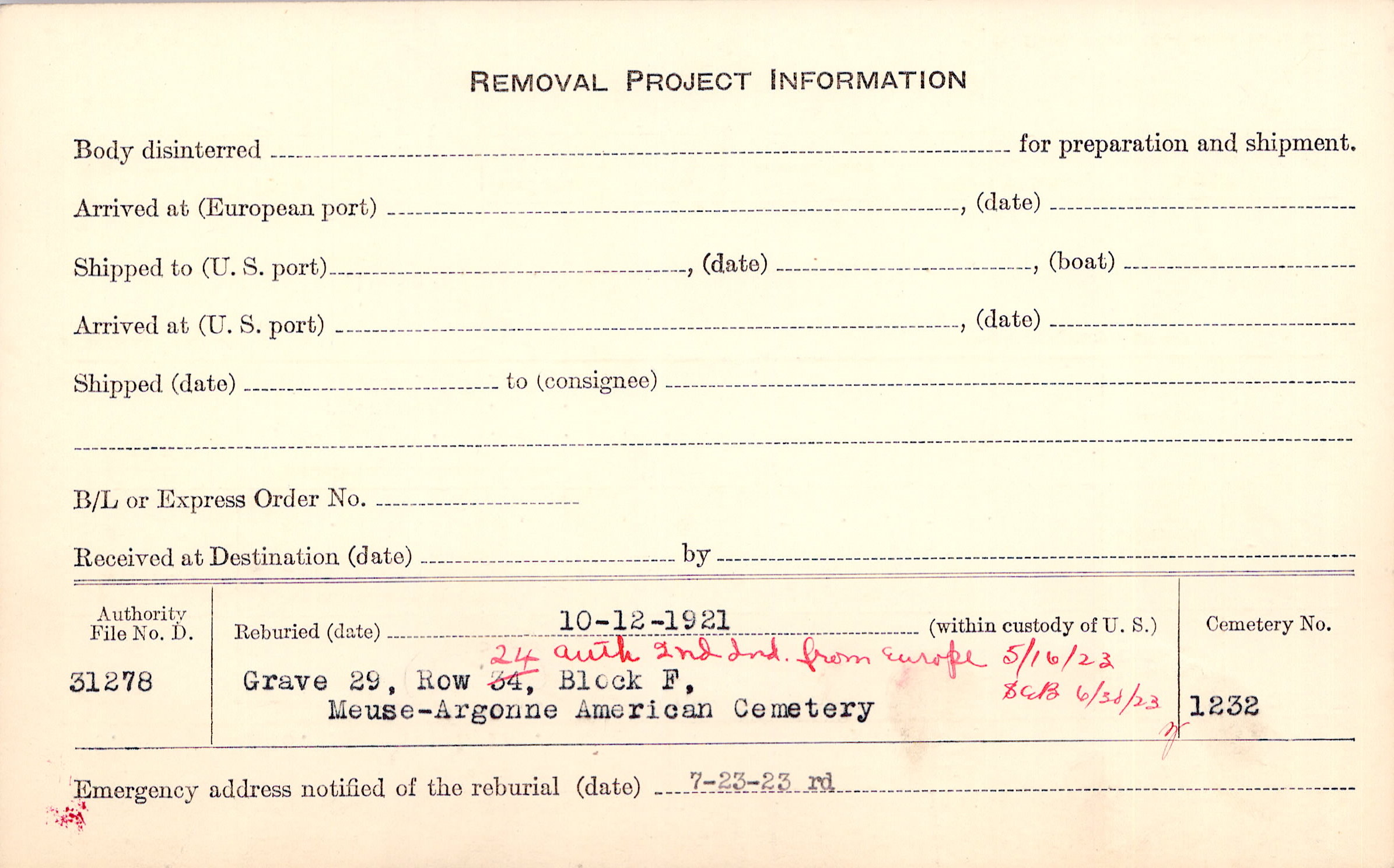 | Permanent Burial in Foreign Cemetery |