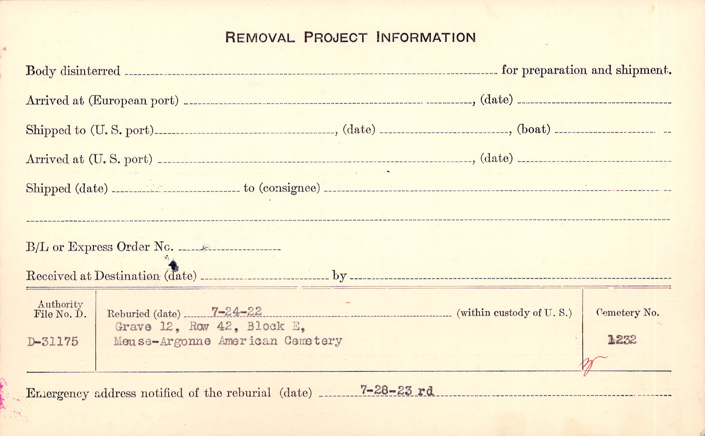 | Permanent Burial in Foreign Cemetery |
