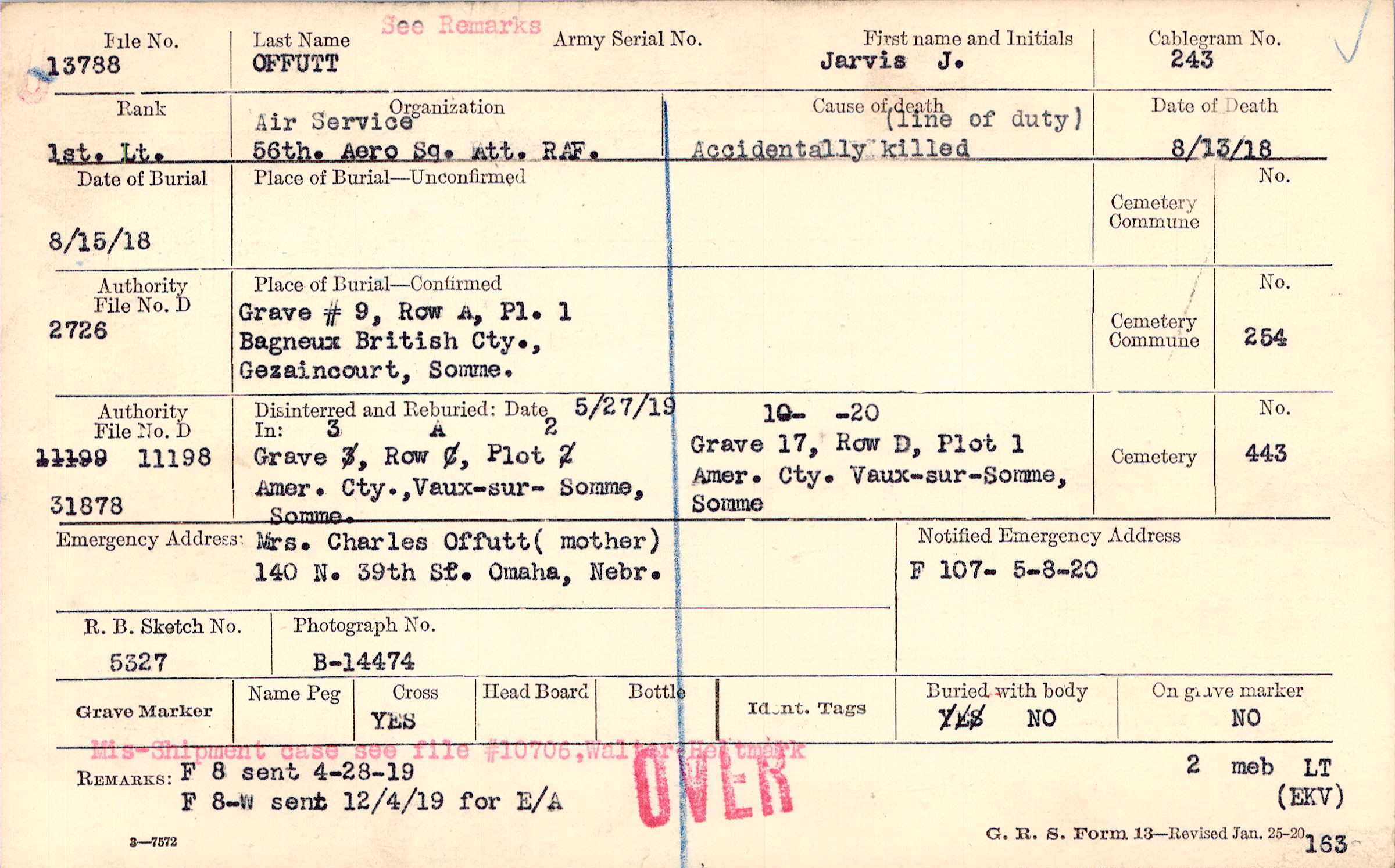 Mrs. Charles Offutt (mother), 140 N. 39th St. Omaha, Nebr.