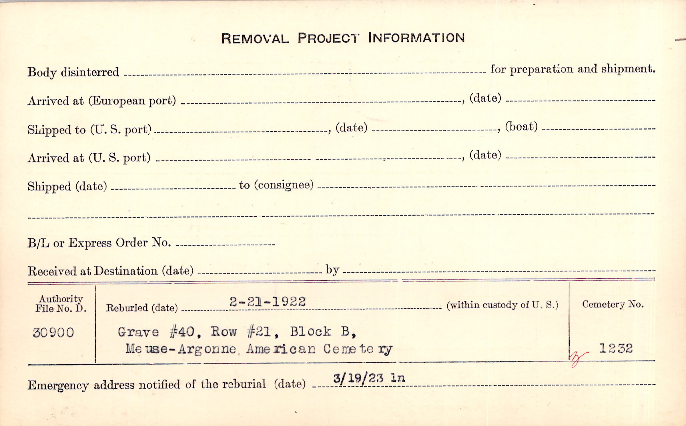 Grave 112, Section 8, Plot 3, Argonne American Cemetery, Romagne-sous-Montfaucon, Meuse
