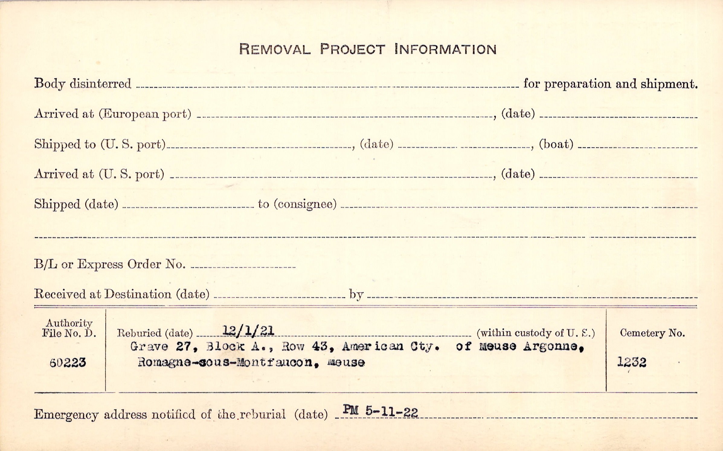 | Permanent Burial in Foreign Cemetery |