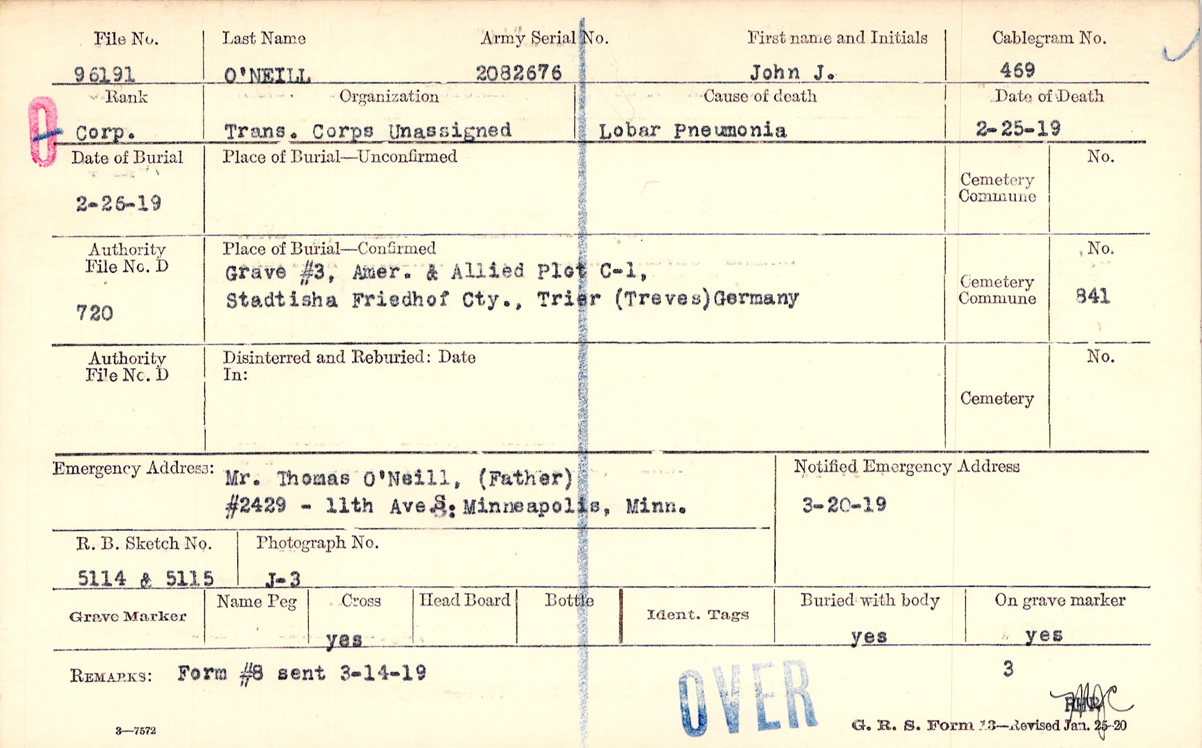 Mr. Thomas O'Neill, (Father), #2429 - 11th Ave. S. Minneapolis, Minn.