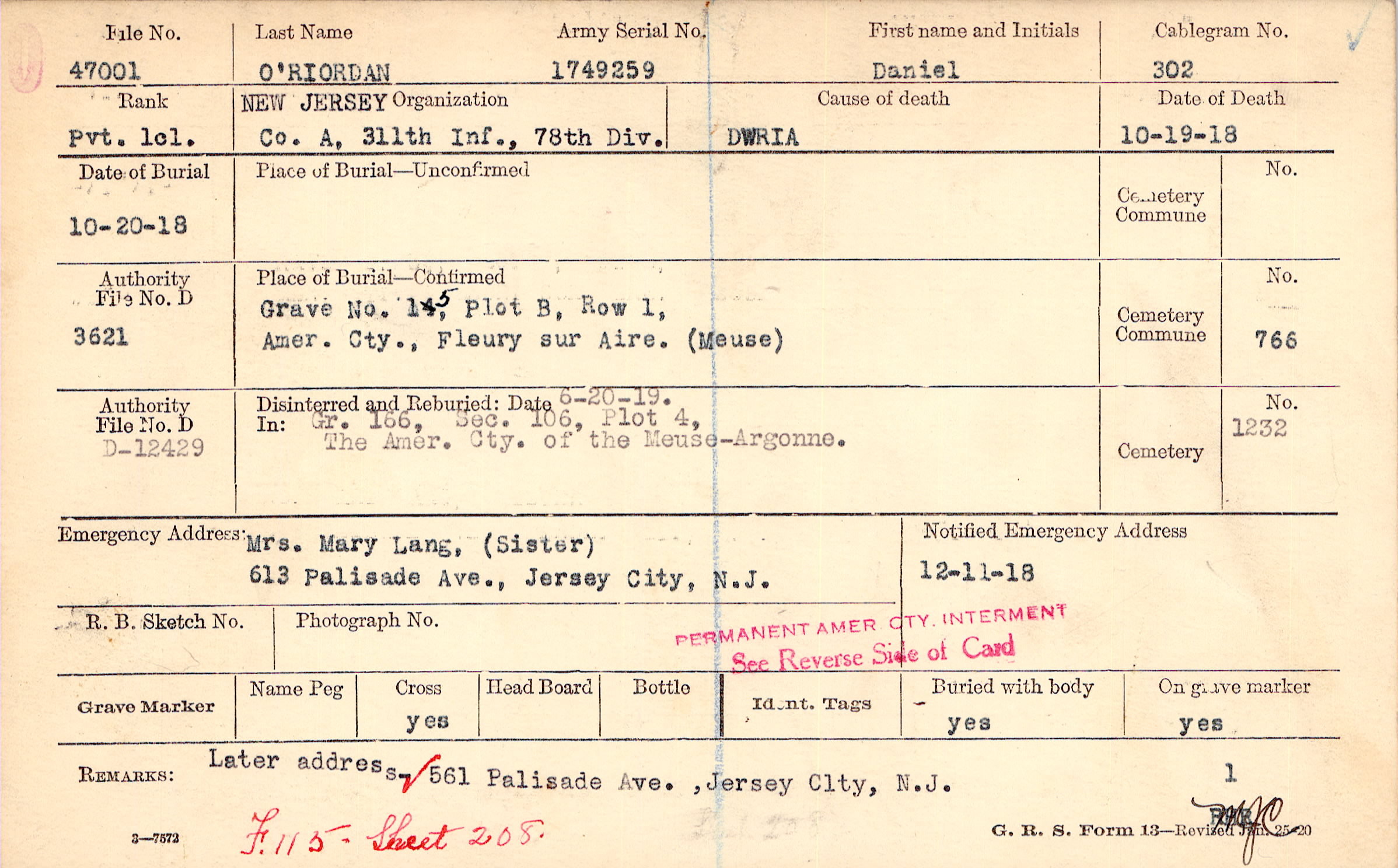 Later address - 561 Palisade Ave., Jersey Clty, N.J., F115 Sheet 208