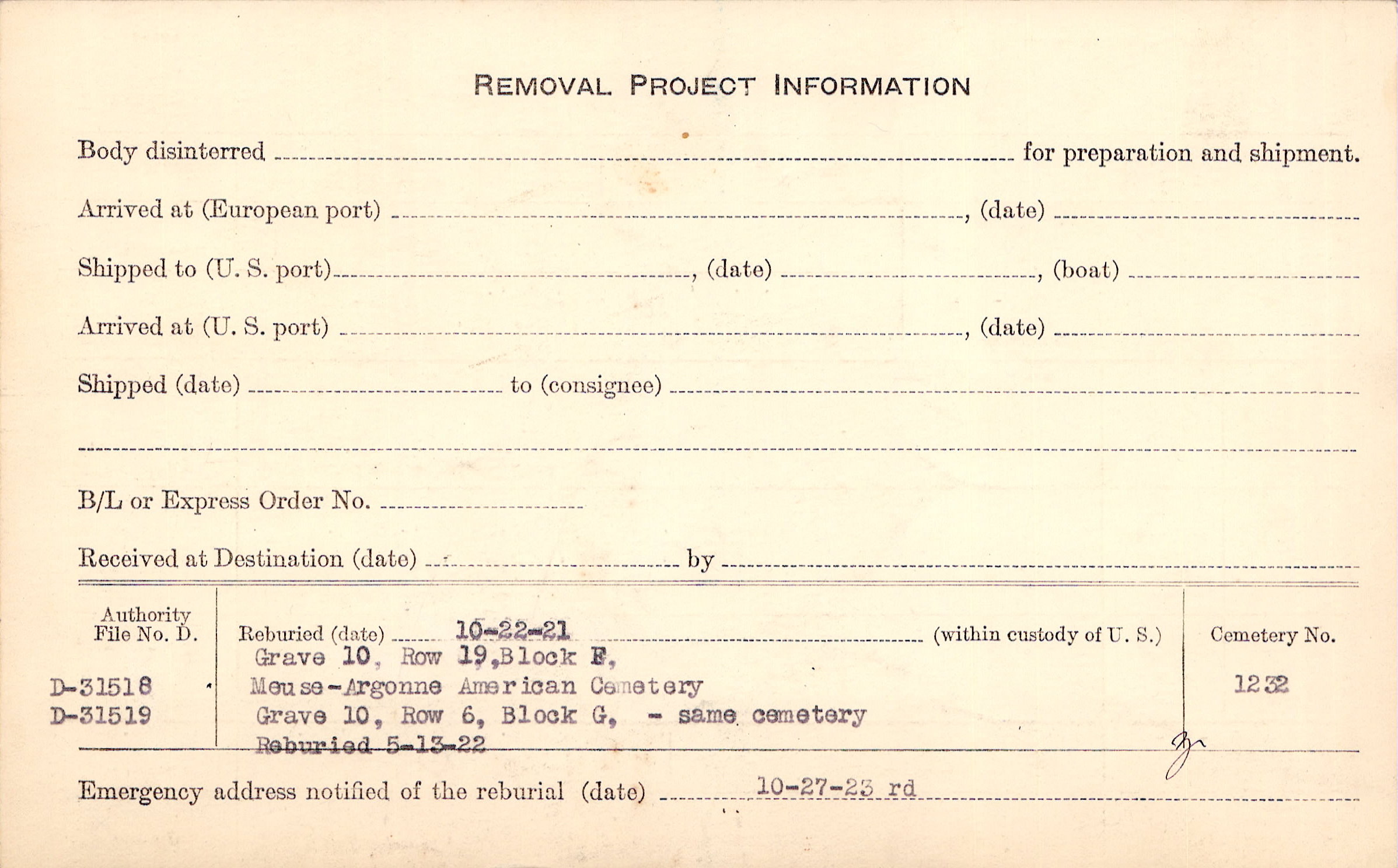 Prior Burial in Foreign Cemetery |