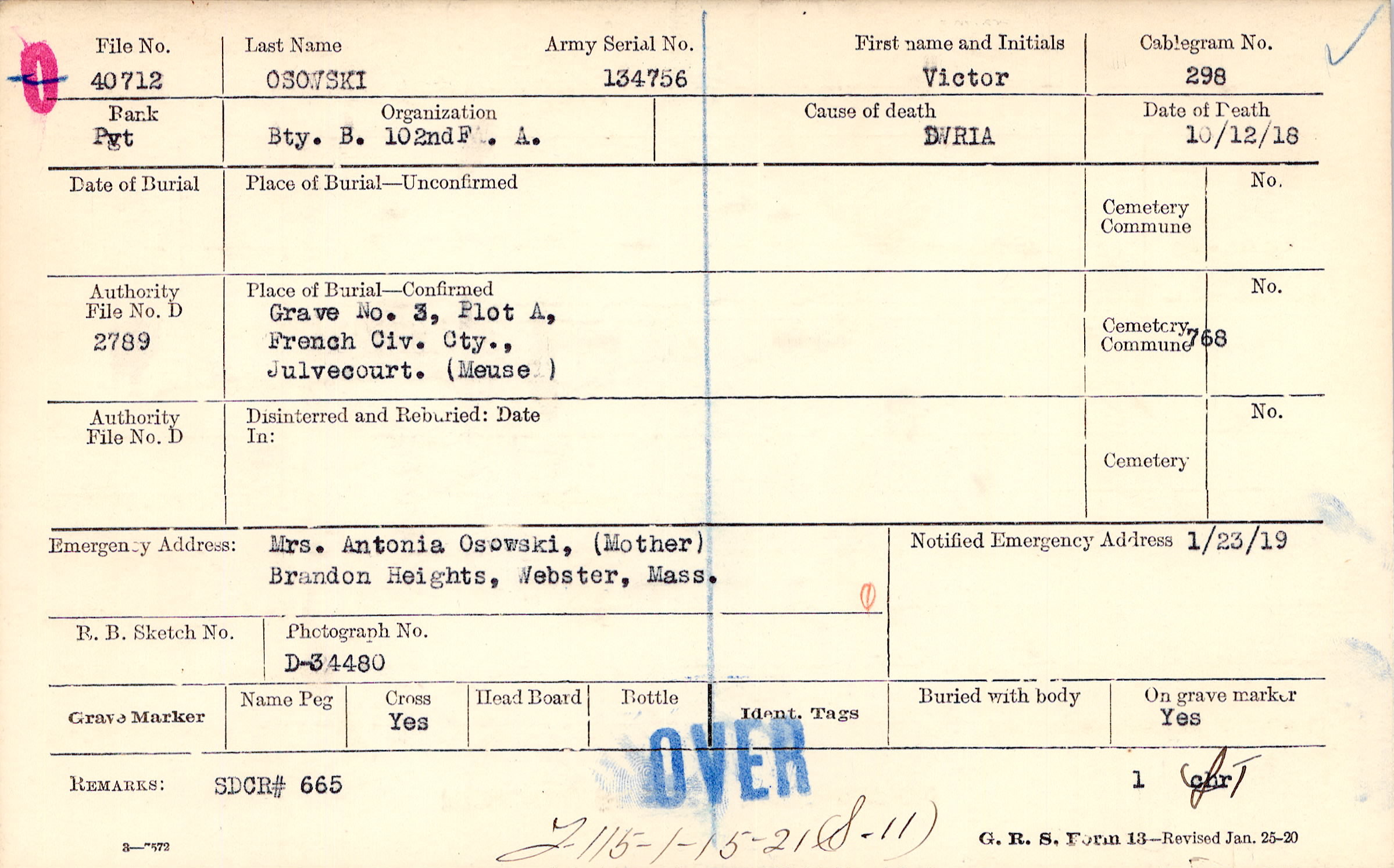Grave 3, Plot A, French Civ. Cty., Julvecourt. (Meuse)