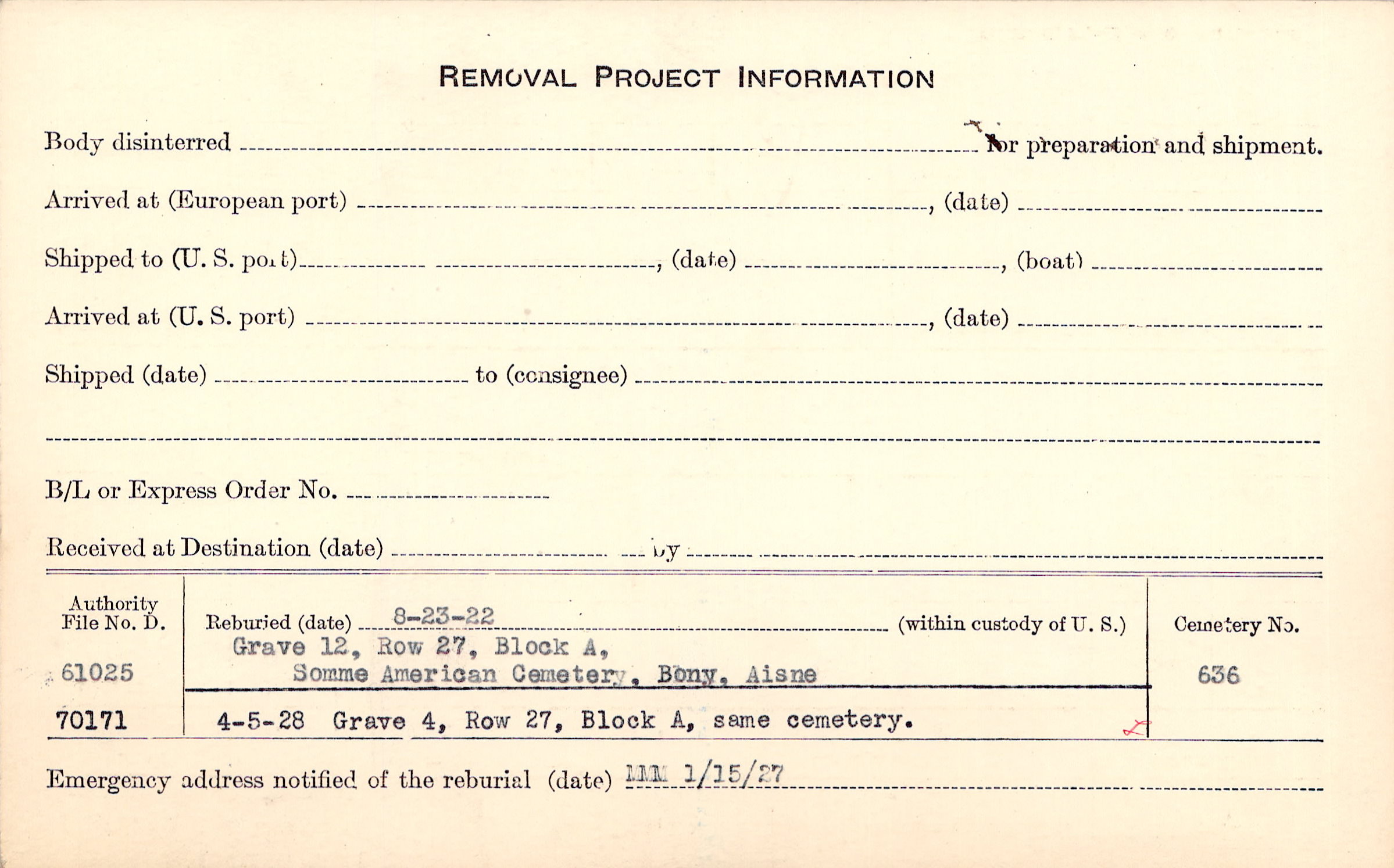 Prior Burial in Foreign Cemetery |