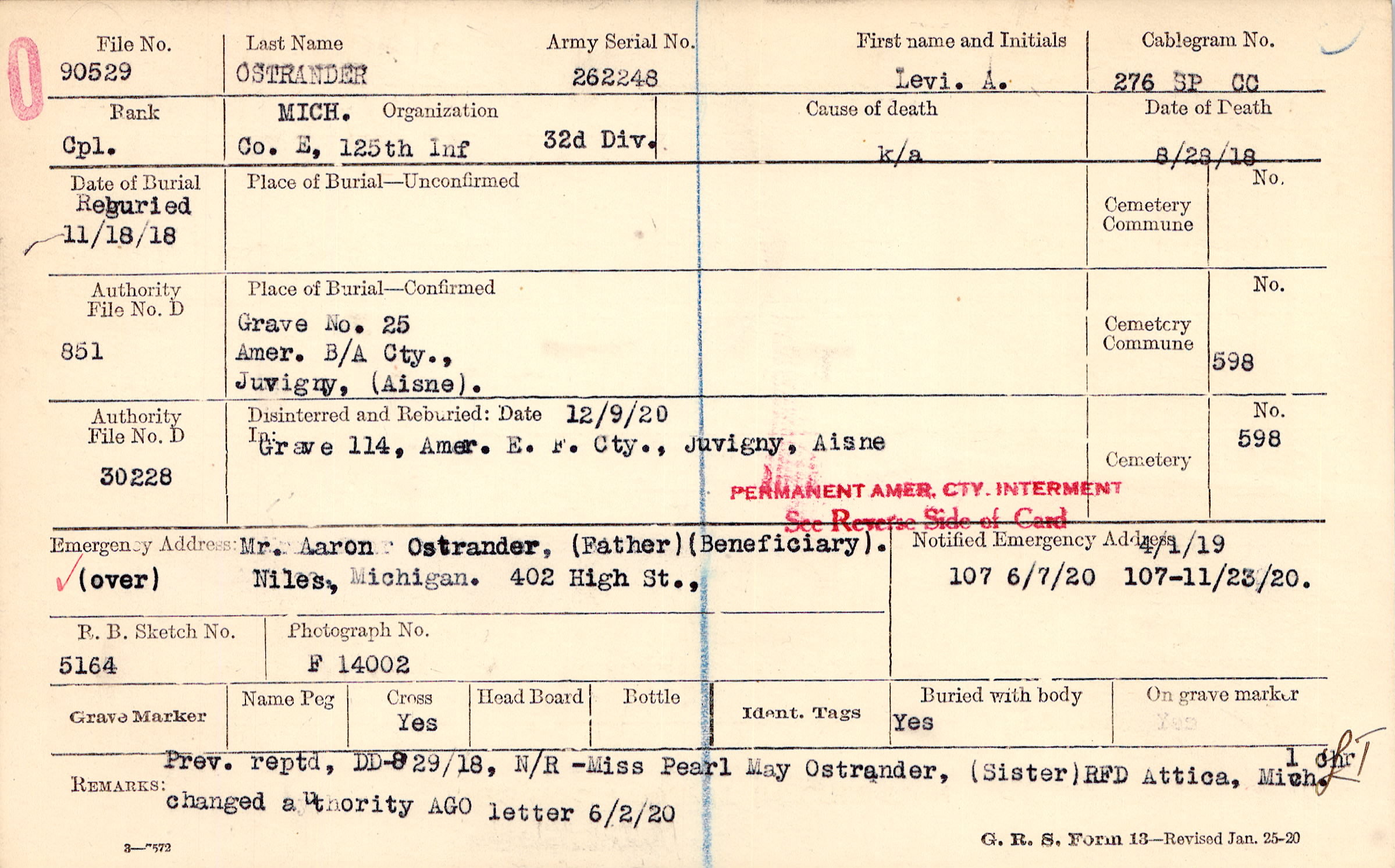 Grave 25, Amer. B/A Cty., Juvigny, Aisne