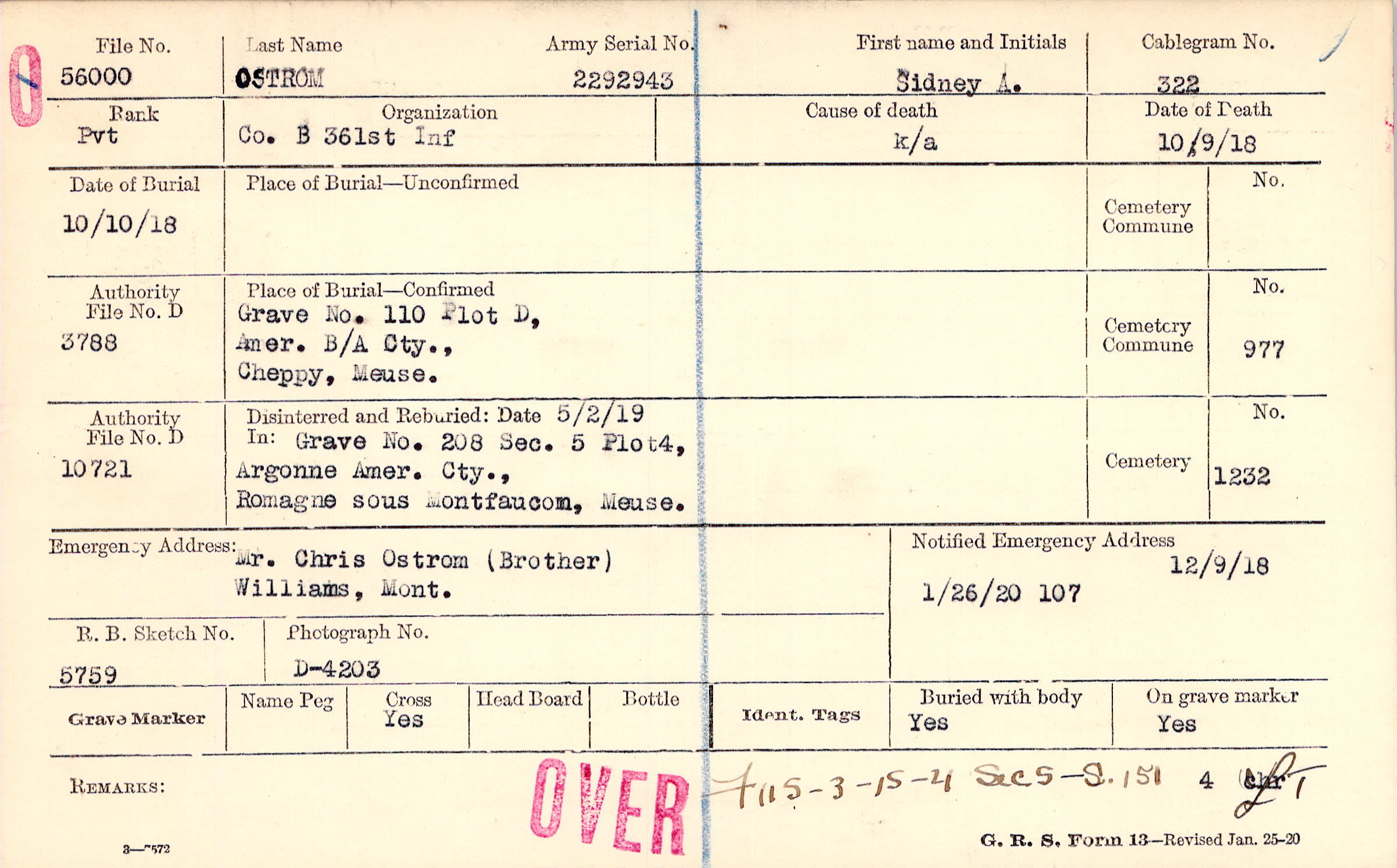 Grave 110, Plot D, Amer. B/A Cty., Cheppy, Meuse.