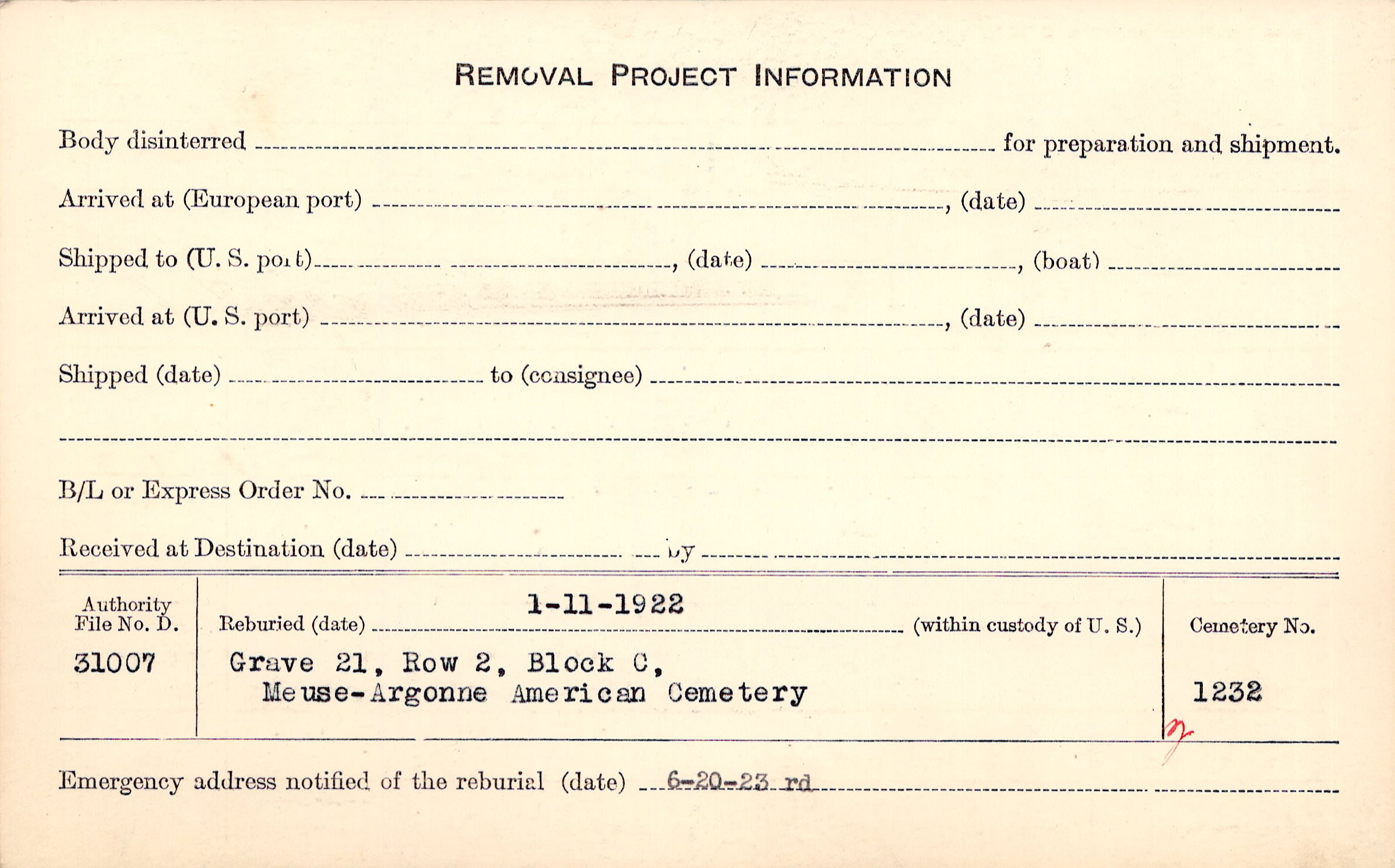 Grave 104, Section 23, Plot 2, Argonne American Cemetery, Romagne-sous-Montfaucon, Meuse