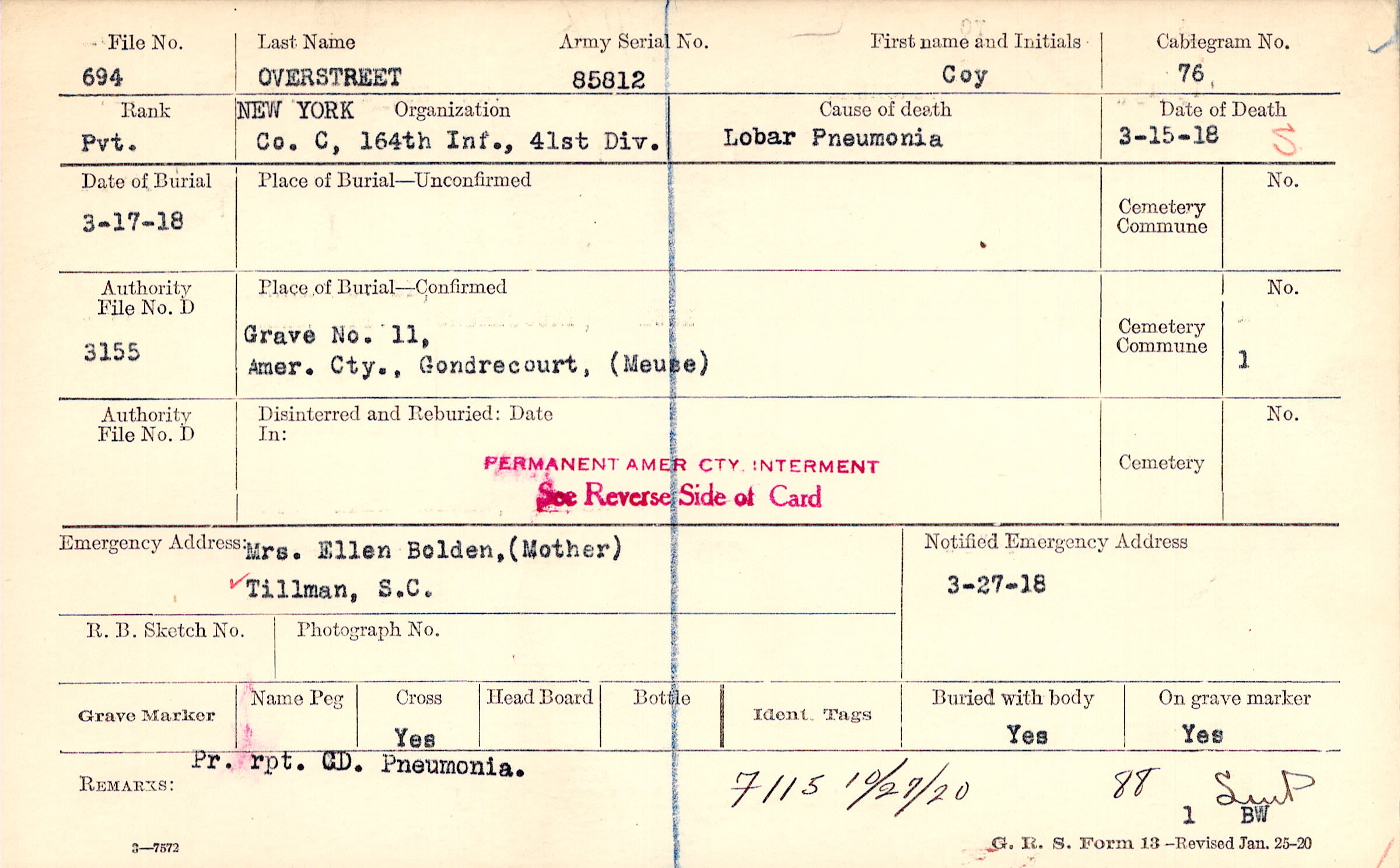 Grave 11, Amer. Cty., Gondrecourt, Meuse