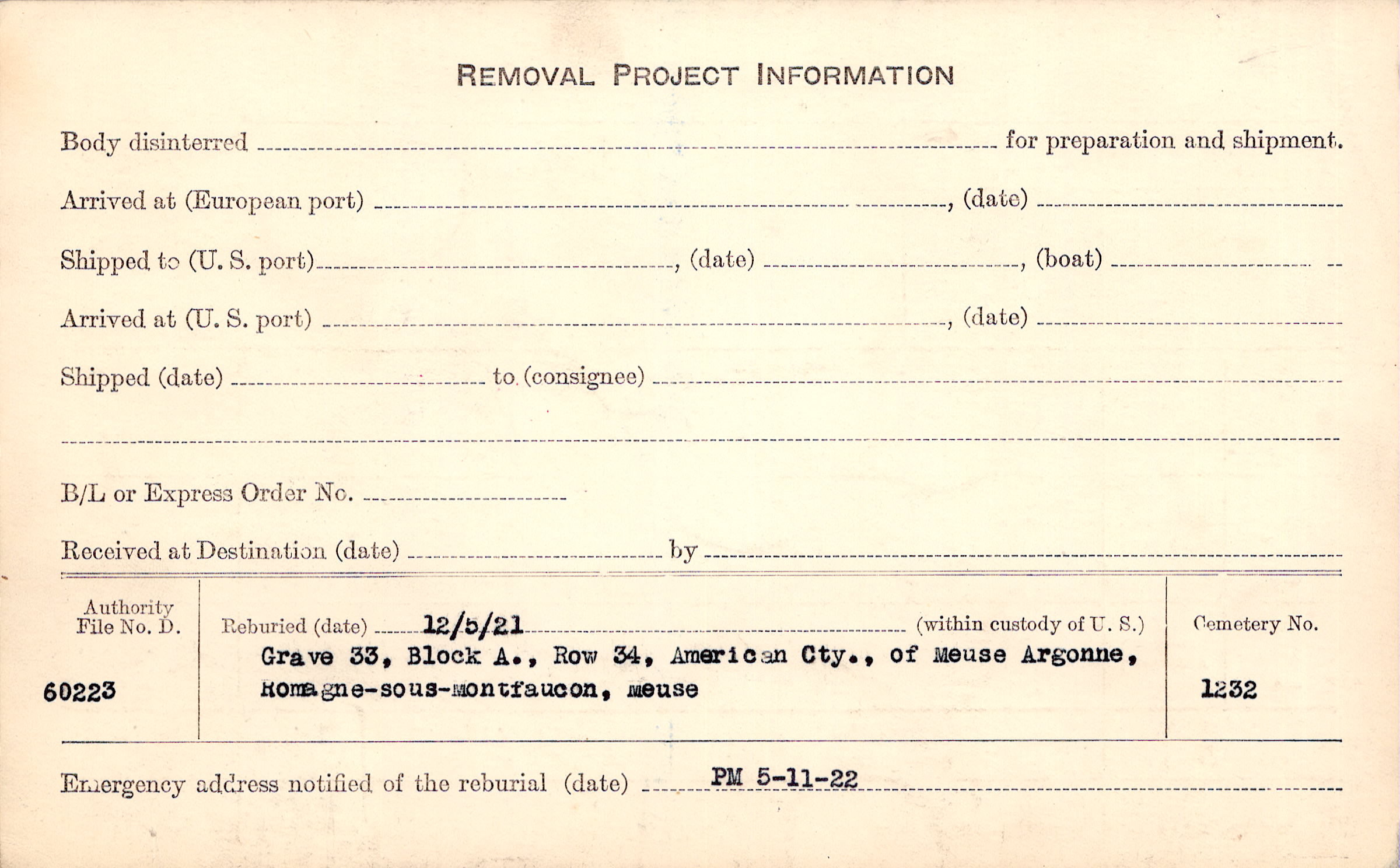 | Permanent Burial in Foreign Cemetery |