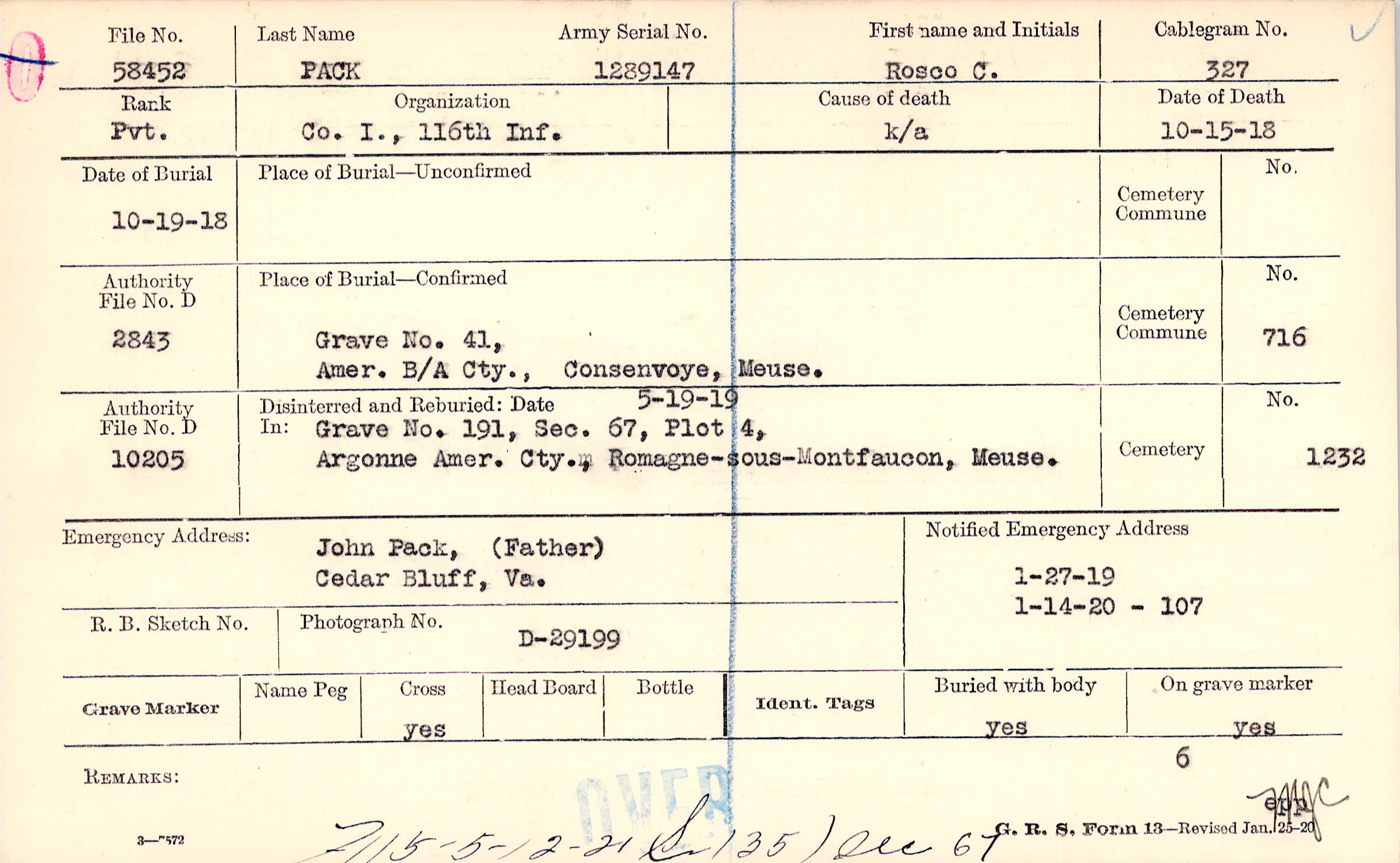 Grave 41, Amer. B/A Cty. , Consenvoye, Meuse.