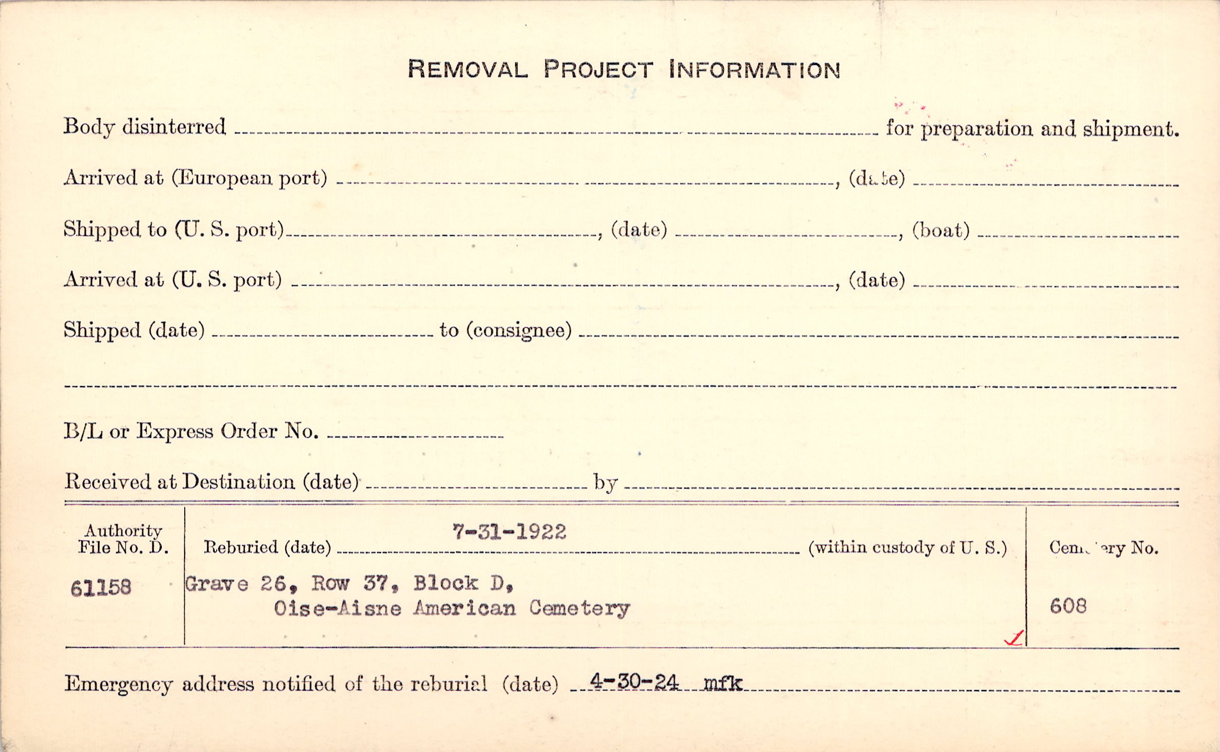 Grave 237, Amer. B/A Cty., Juvigny, Aisne