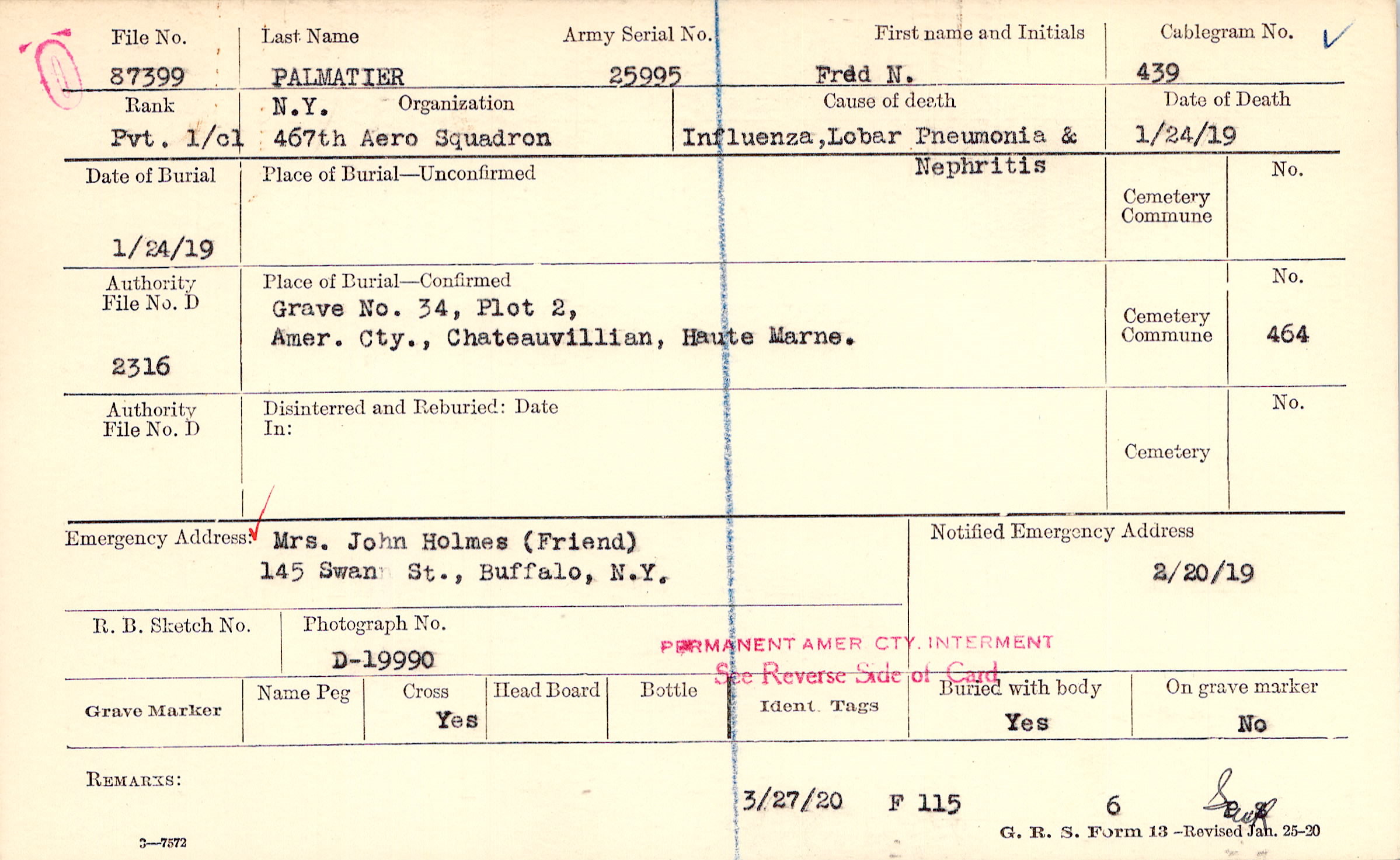 Grave 34, Plot 2, Amer. Cty., Chateauvillian, Haute Marne.