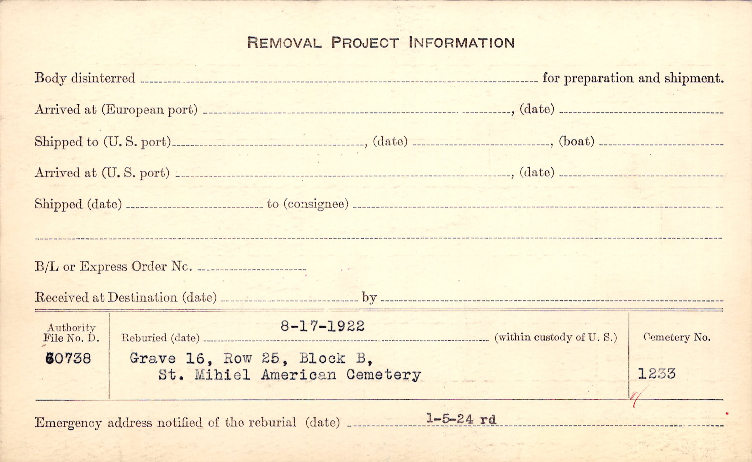 | Permanent Burial in Foreign Cemetery |