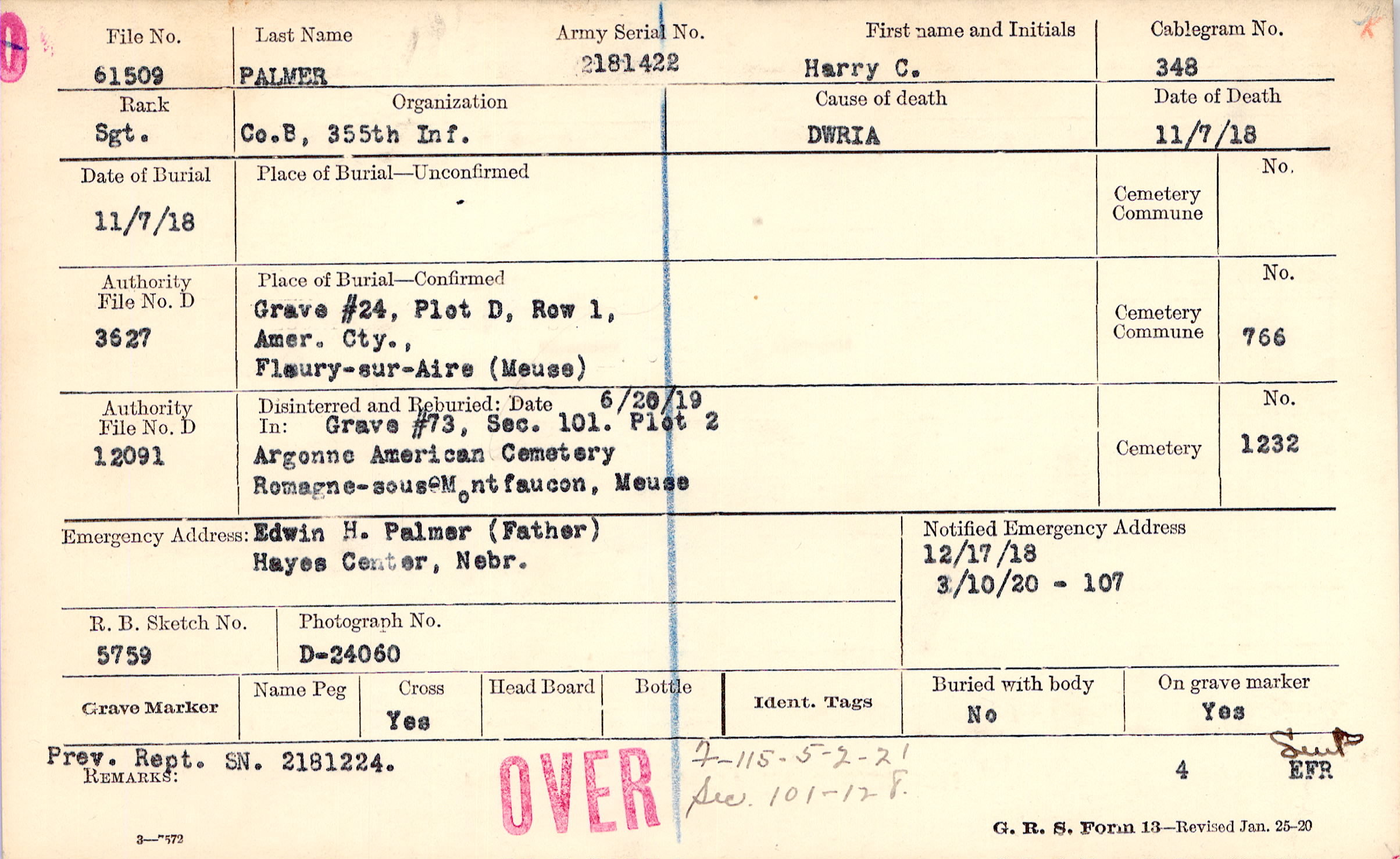 Grave #24, Plot D, Row 1, Amer. Cty., Fleury-sur-Aire, Meuse