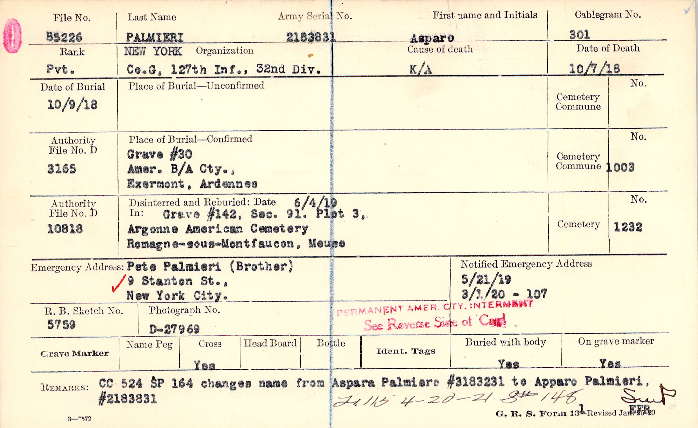 CC 524 SP 164 changes name from Aspara Palmiero #3183231 to Apparo Palmieri, #2183831, F115 4-20-21 S# 148