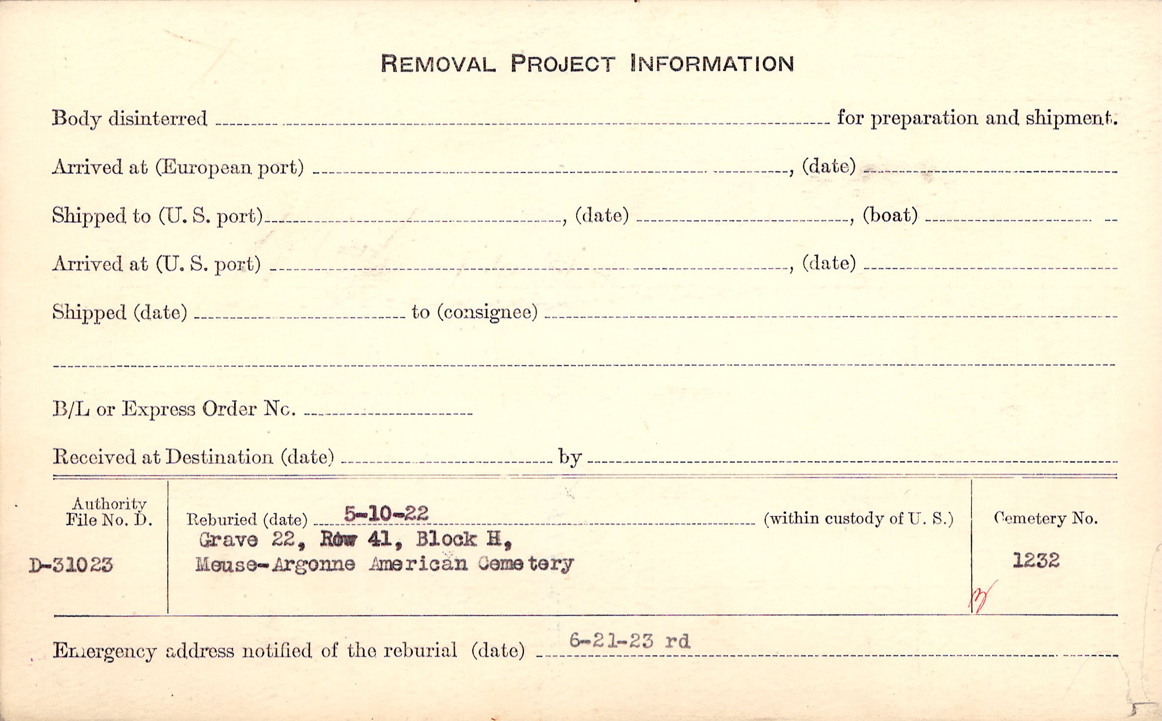 | Permanent Burial in Foreign Cemetery |