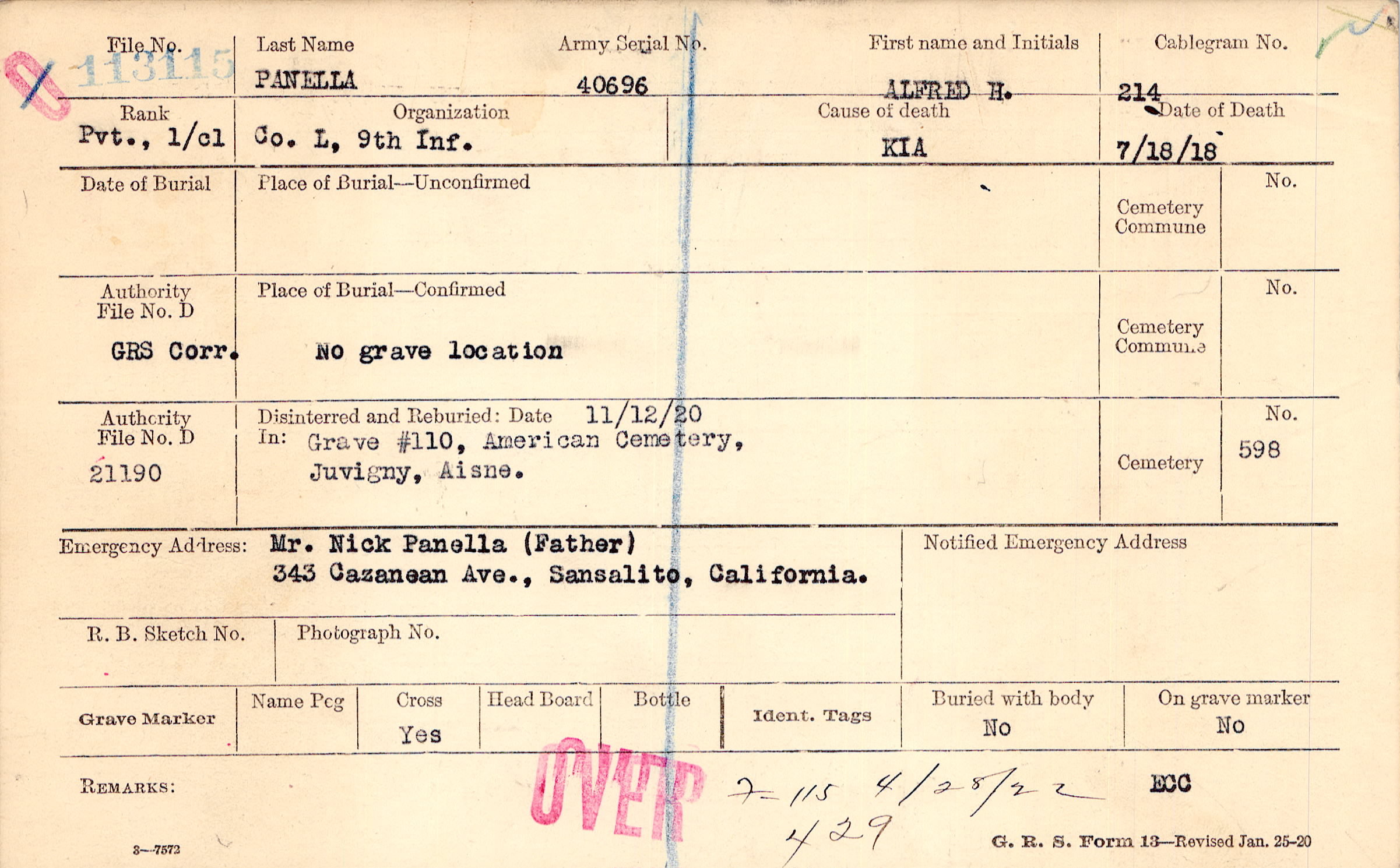 Mr. Nick Panella (Father), 343 Cazanean Ave., Sansalito, California