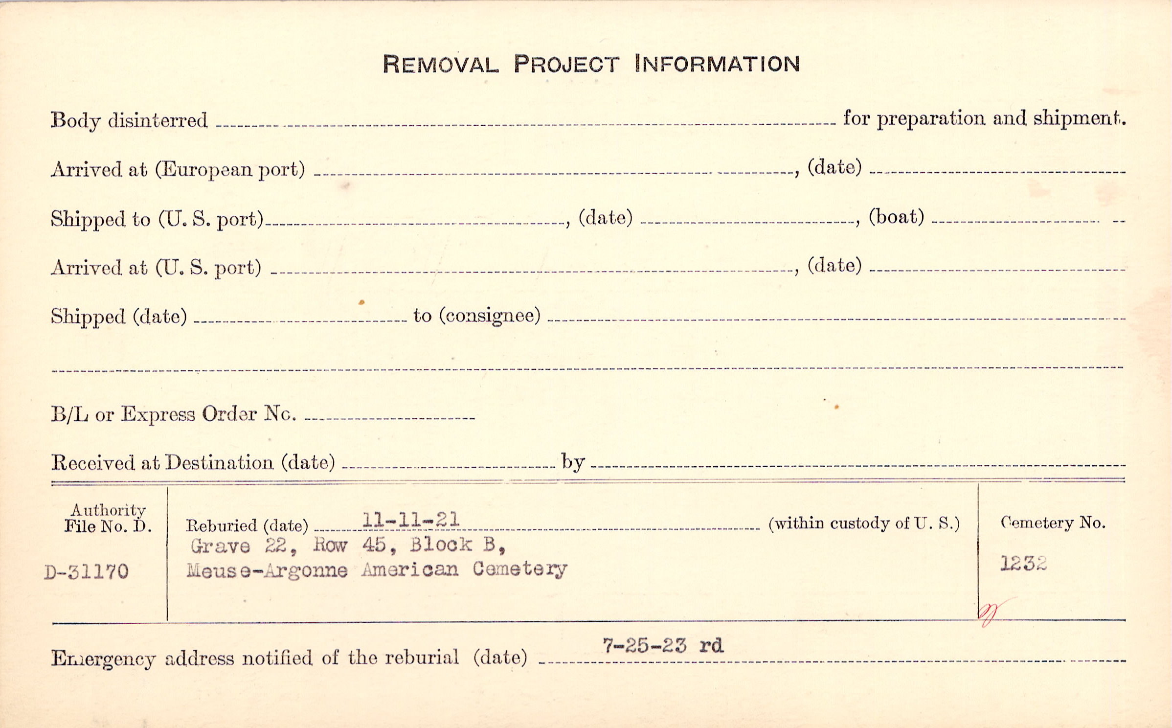 | Permanent Burial in Foreign Cemetery |