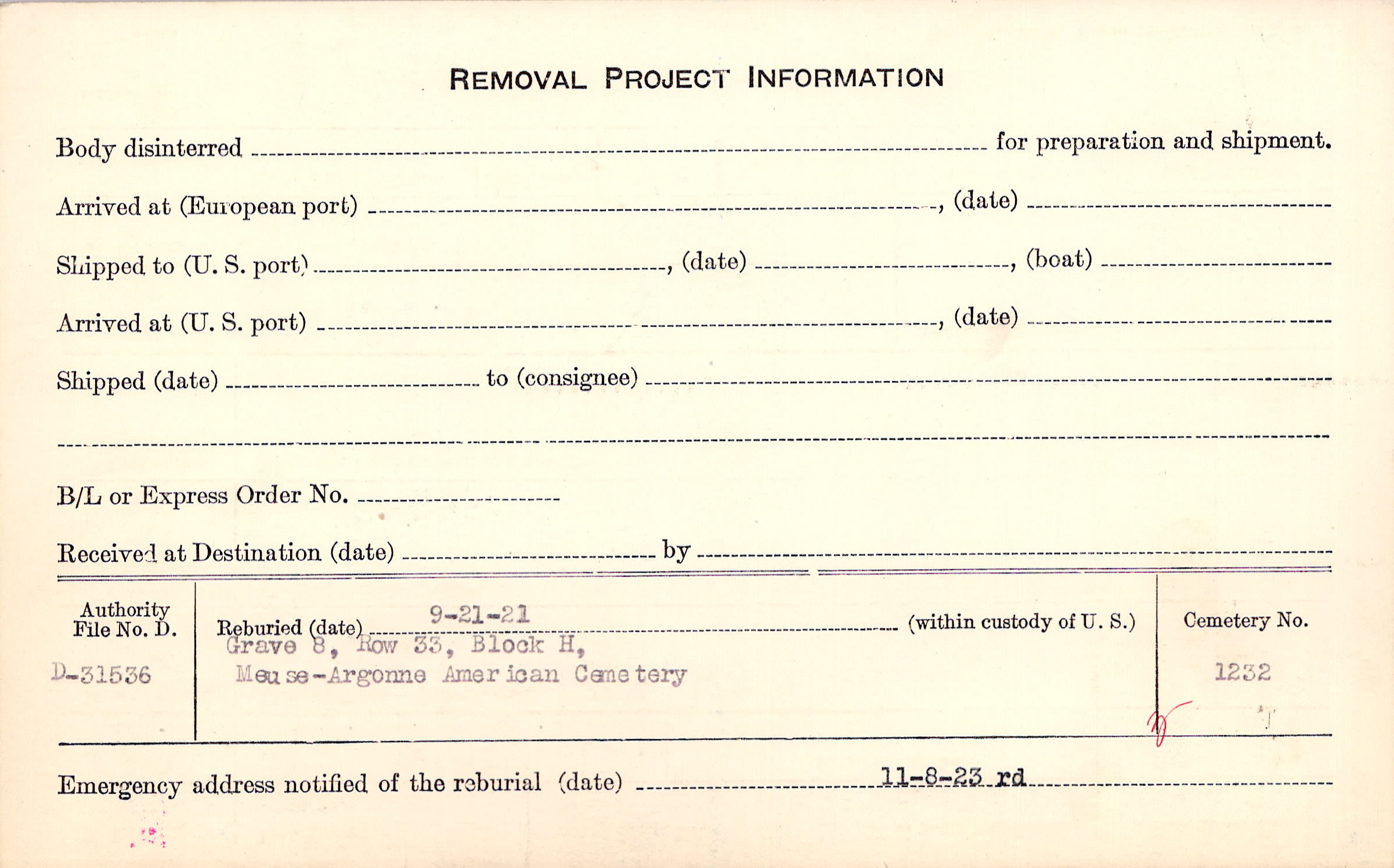 | Permanent Burial in Foreign Cemetery |