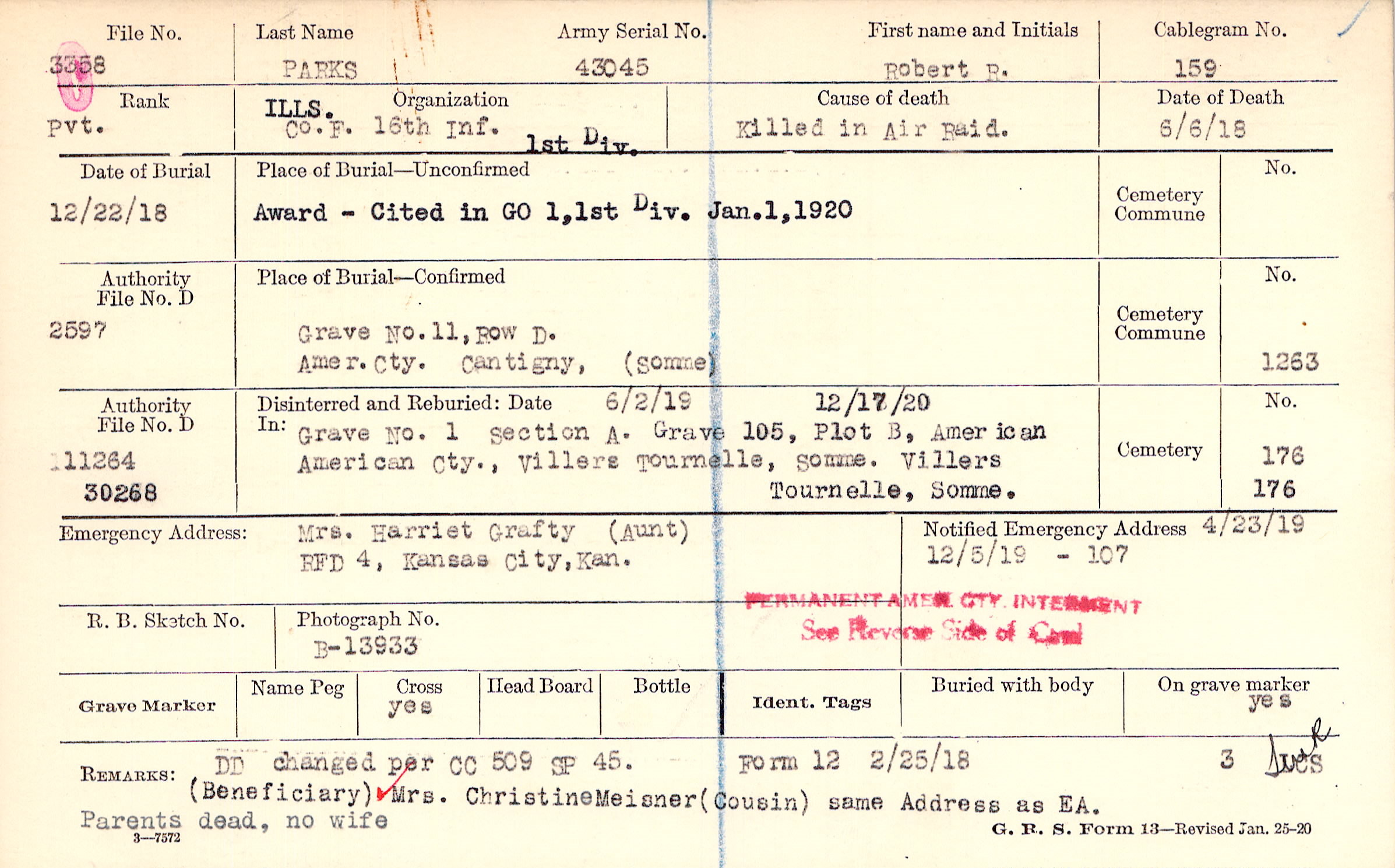 Grave 11, Row D. Amer. Cty. Cantigny, (Somme)