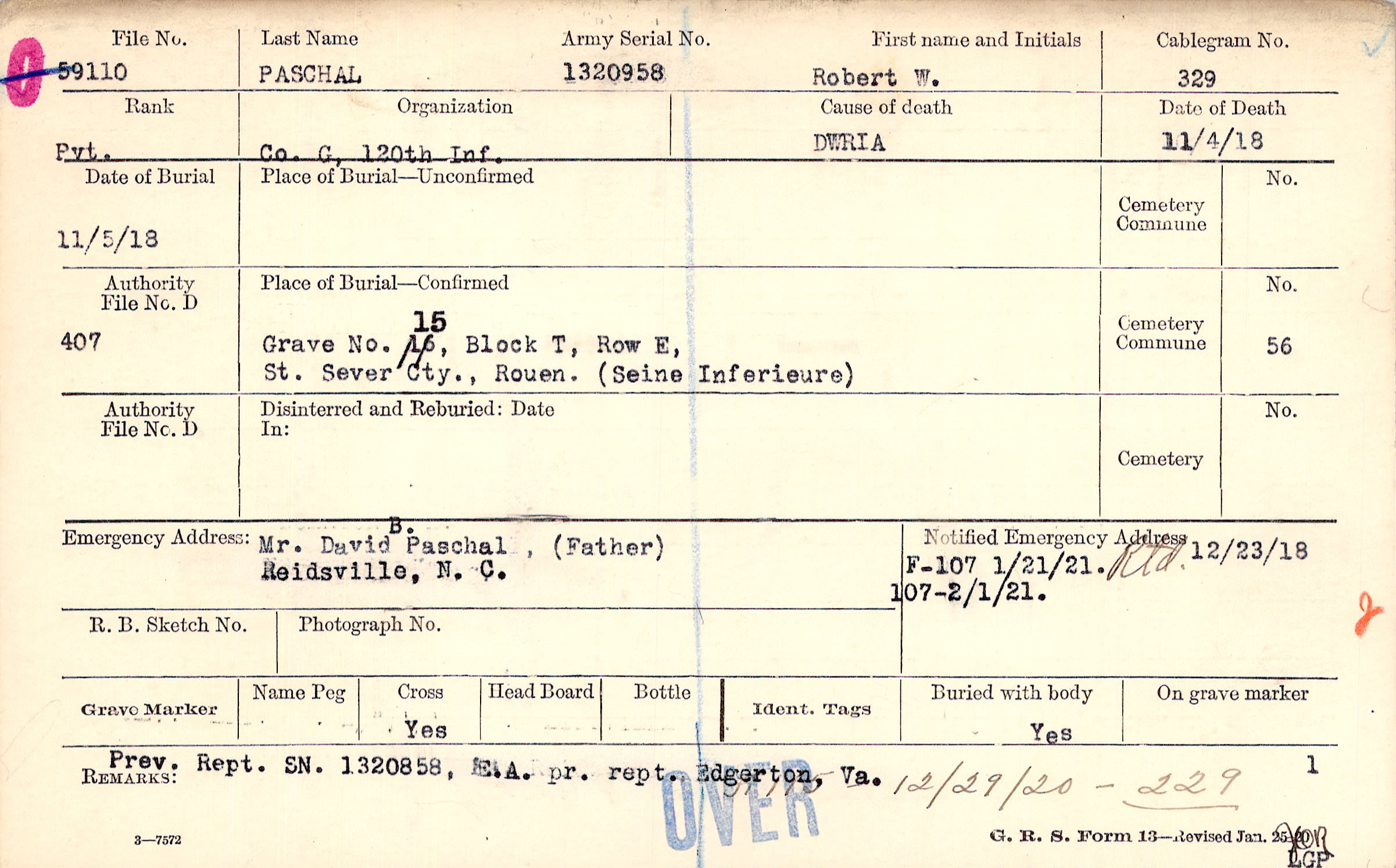 Prev. Rept. SN. 1320858, E.A. pr. rept. Edgarton, Va. 12/29/20 - 229, F115 - 12/29/20 - 229