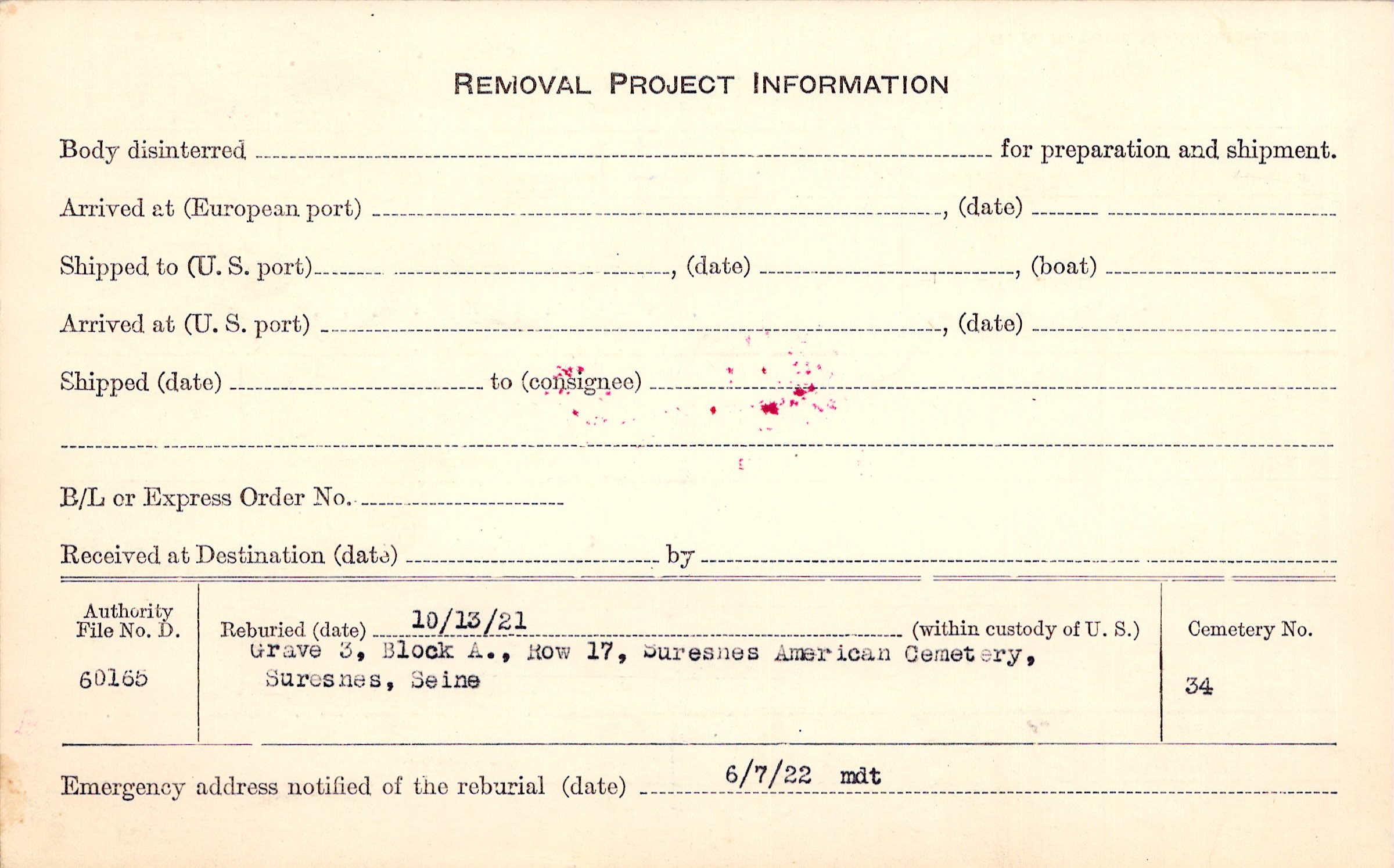 | Reburied (date): |