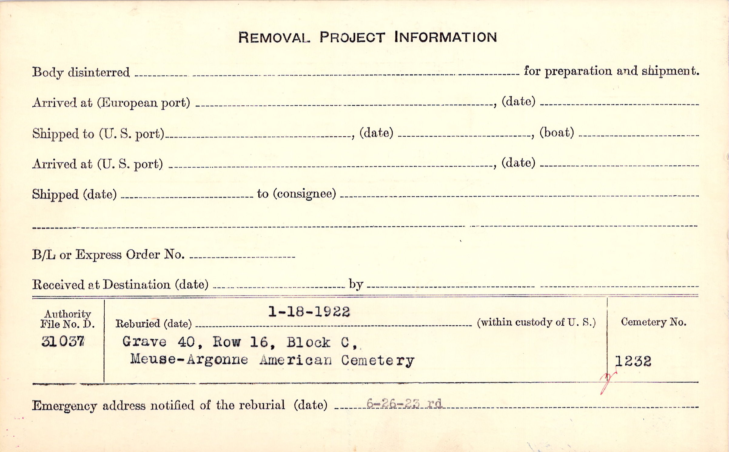 | Permanent Burial in Foreign Cemetery |